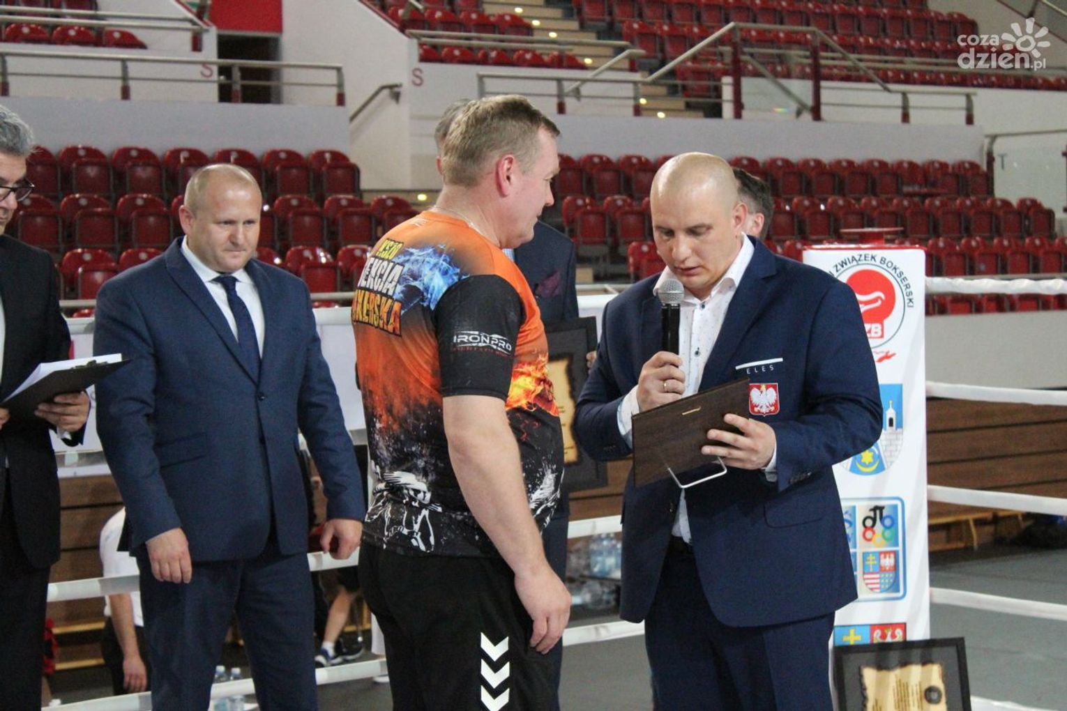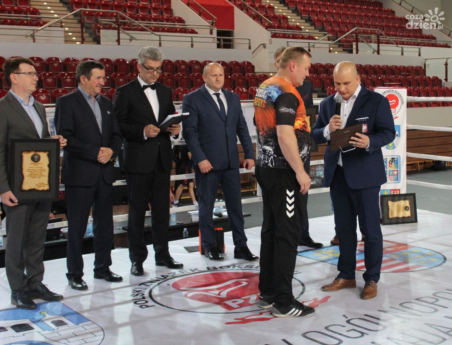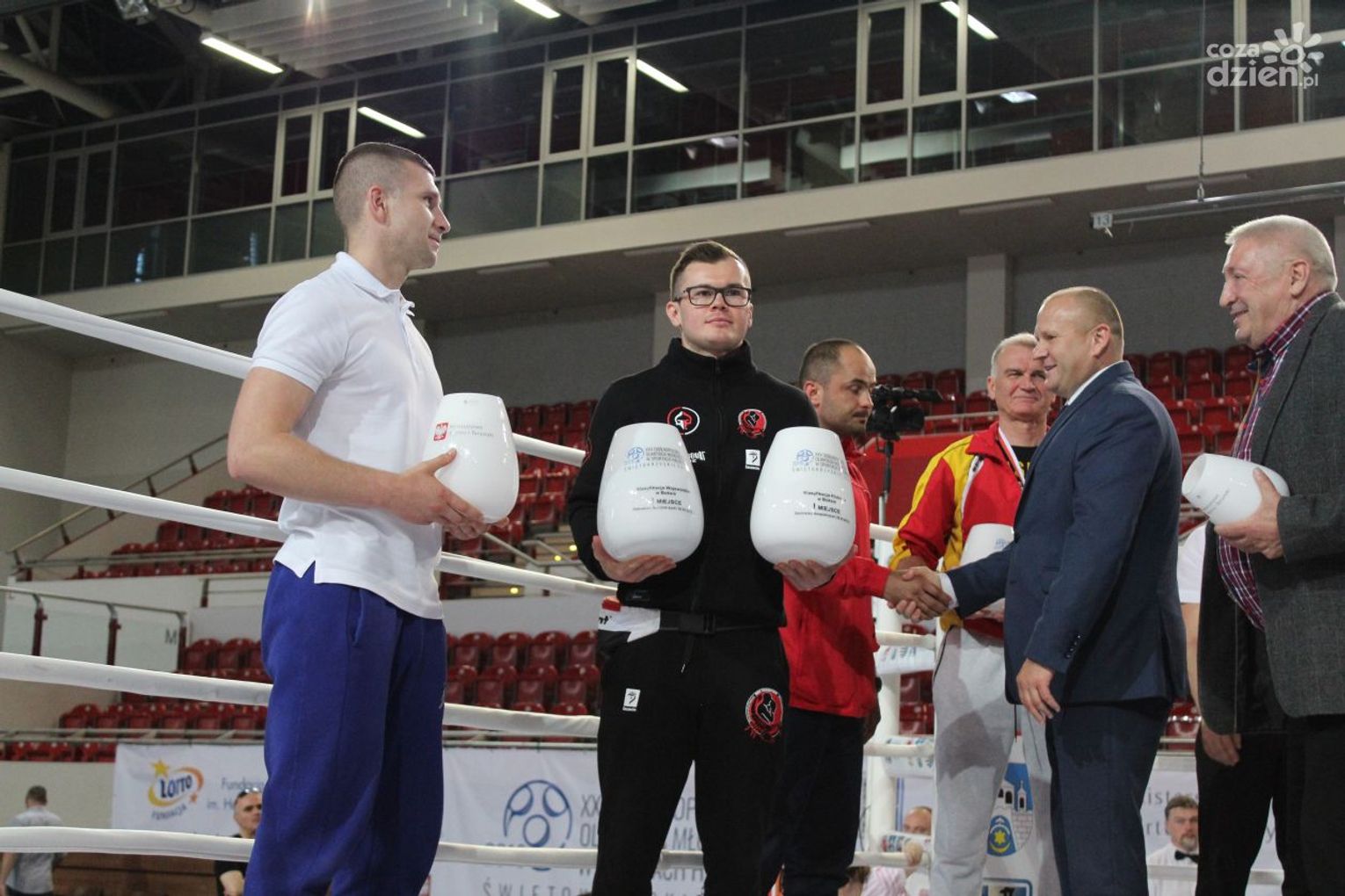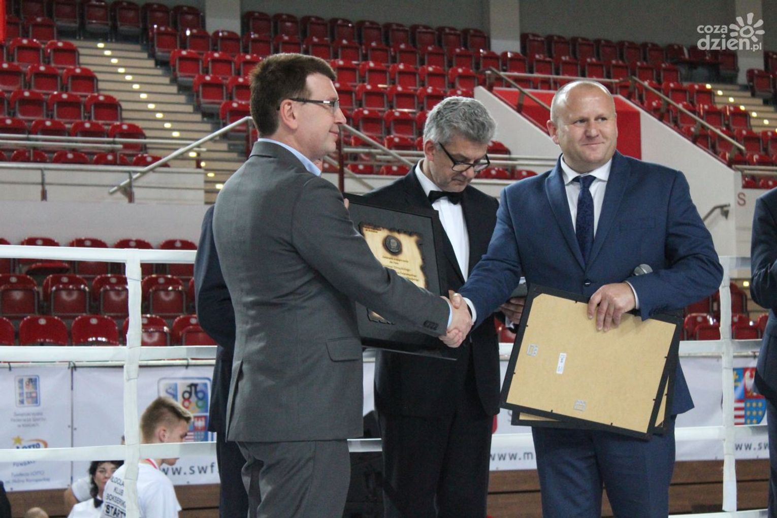 Na rozgrywanych w Ostrowcu zawodach wzięło udział ponad 150 zawodników z całej Polski, niedziela była ostatnim dniem wydarzenia i zarówno ostatnim dniem rozgrywanej od początku kwietnia na świętokrzyskiej ziemi XXV Ogólnopolskiej Olimpiady Młodzieży w sportach halowych. Podczas uroczystego zakończenia na hali przy Świętokrzyskiej gościliśmy min. Grzegorza Nowaczka prezesa Polskiego Związku Bokserskiego, Jacka Kowalczyka z Departamentu Sportu i Turystyki Świętokrzyskiego Urzędu Marszałkowskiego oraz prezydenta Ostrowca Świętokrzyskiego Jarosława Górczyńskiego. Uroczystość była również doskonałą okazją do uhonorowania okolicznościowym medalem Polskiego Związku Bokserskiego trenera pięściarzy KSZO Eugeniusza Ciocha, który w tym roku obchodzi jubileusz 40 - lecia pracy na rzecz świętokrzyskiego pięściarstwa.