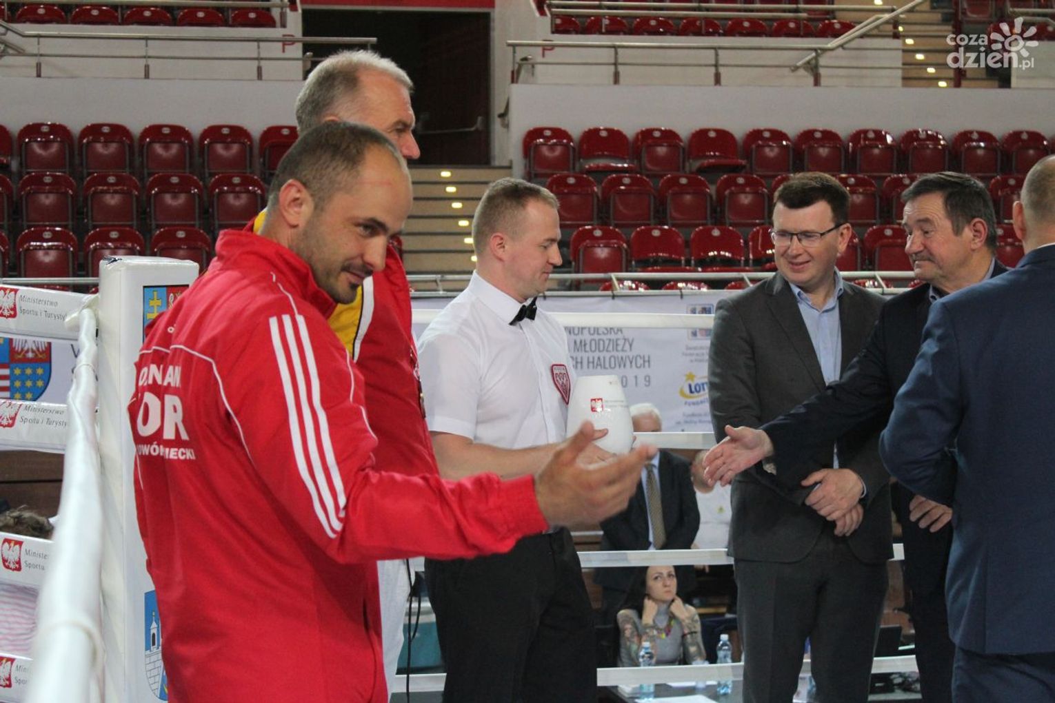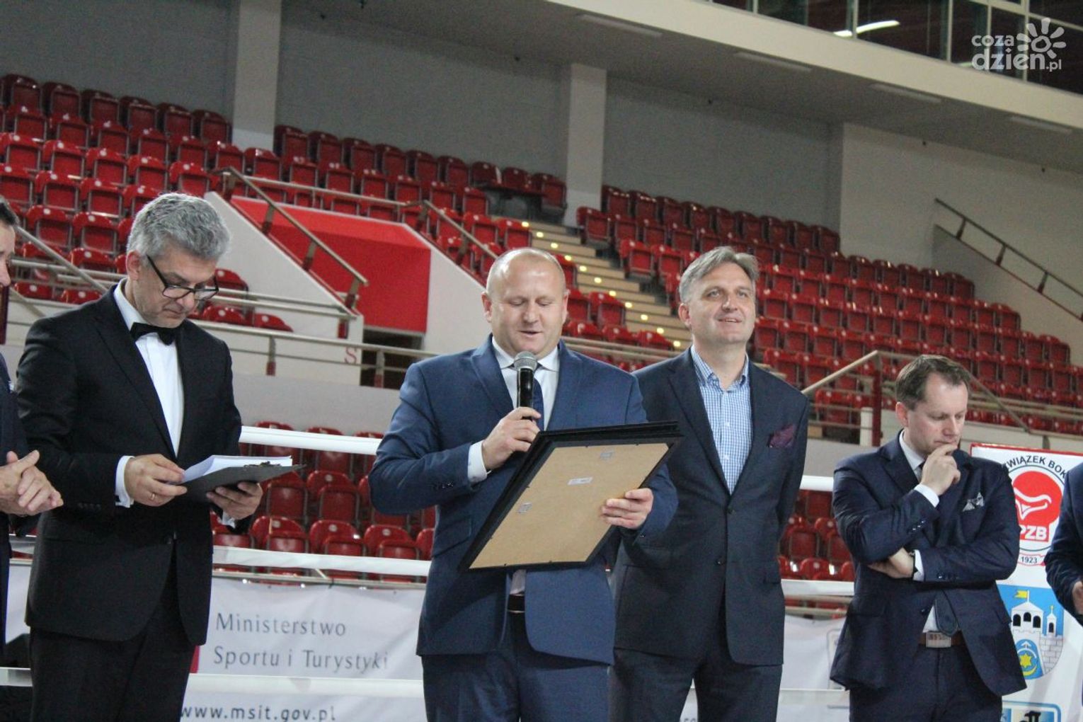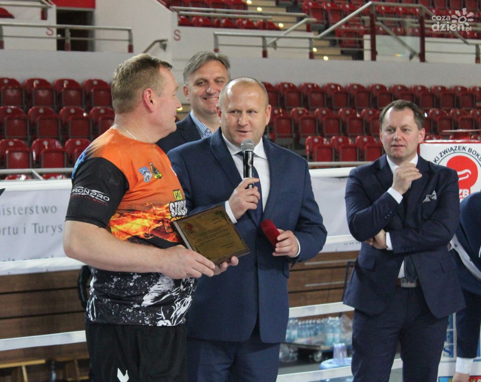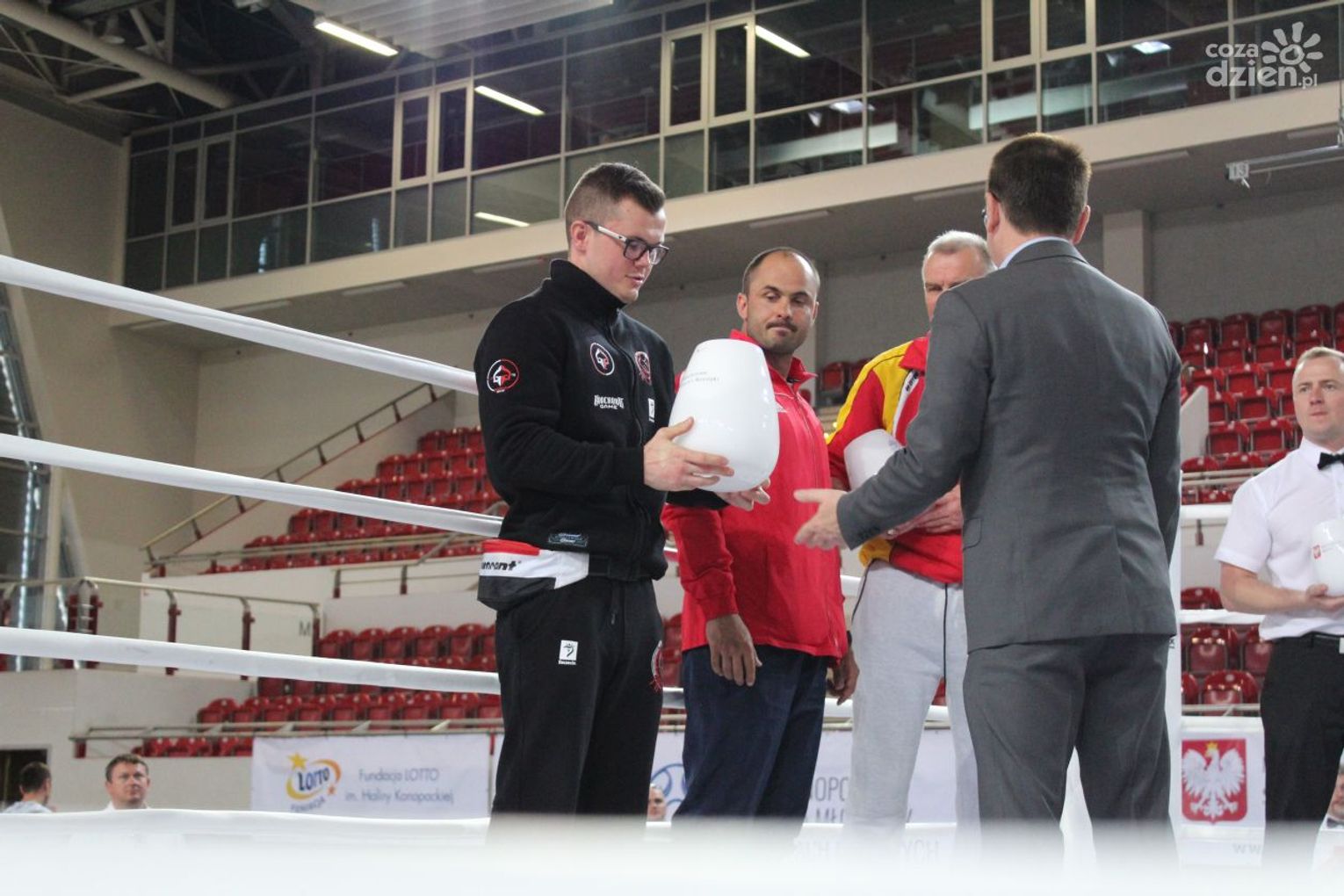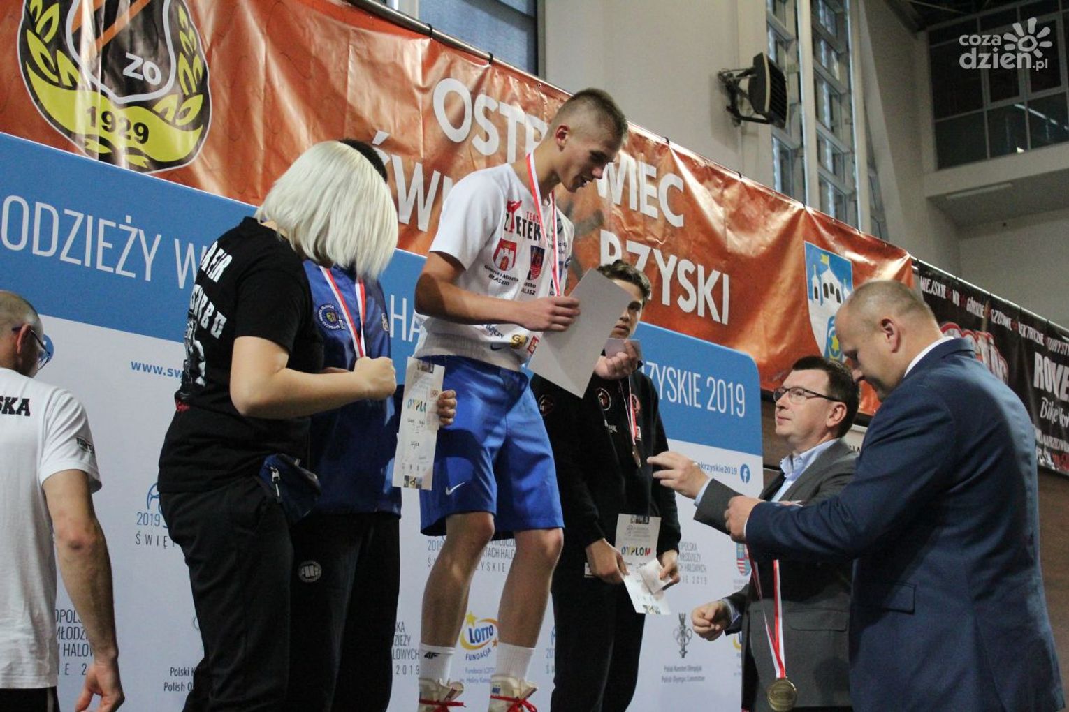 Na rozgrywanych w Ostrowcu zawodach wzięło udział ponad 150 zawodników z całej Polski, niedziela była ostatnim dniem wydarzenia i zarówno ostatnim dniem rozgrywanej od początku kwietnia na świętokrzyskiej ziemi XXV Ogólnopolskiej Olimpiady Młodzieży w sportach halowych. Podczas uroczystego zakończenia na hali przy Świętokrzyskiej gościliśmy min. Grzegorza Nowaczka prezesa Polskiego Związku Bokserskiego, Jacka Kowalczyka z Departamentu Sportu i Turystyki Świętokrzyskiego Urzędu Marszałkowskiego oraz prezydenta Ostrowca Świętokrzyskiego Jarosława Górczyńskiego. Uroczystość była również doskonałą okazją do uhonorowania okolicznościowym medalem Polskiego Związku Bokserskiego trenera pięściarzy KSZO Eugeniusza Ciocha, który w tym roku obchodzi jubileusz 40 - lecia pracy na rzecz świętokrzyskiego pięściarstwa.