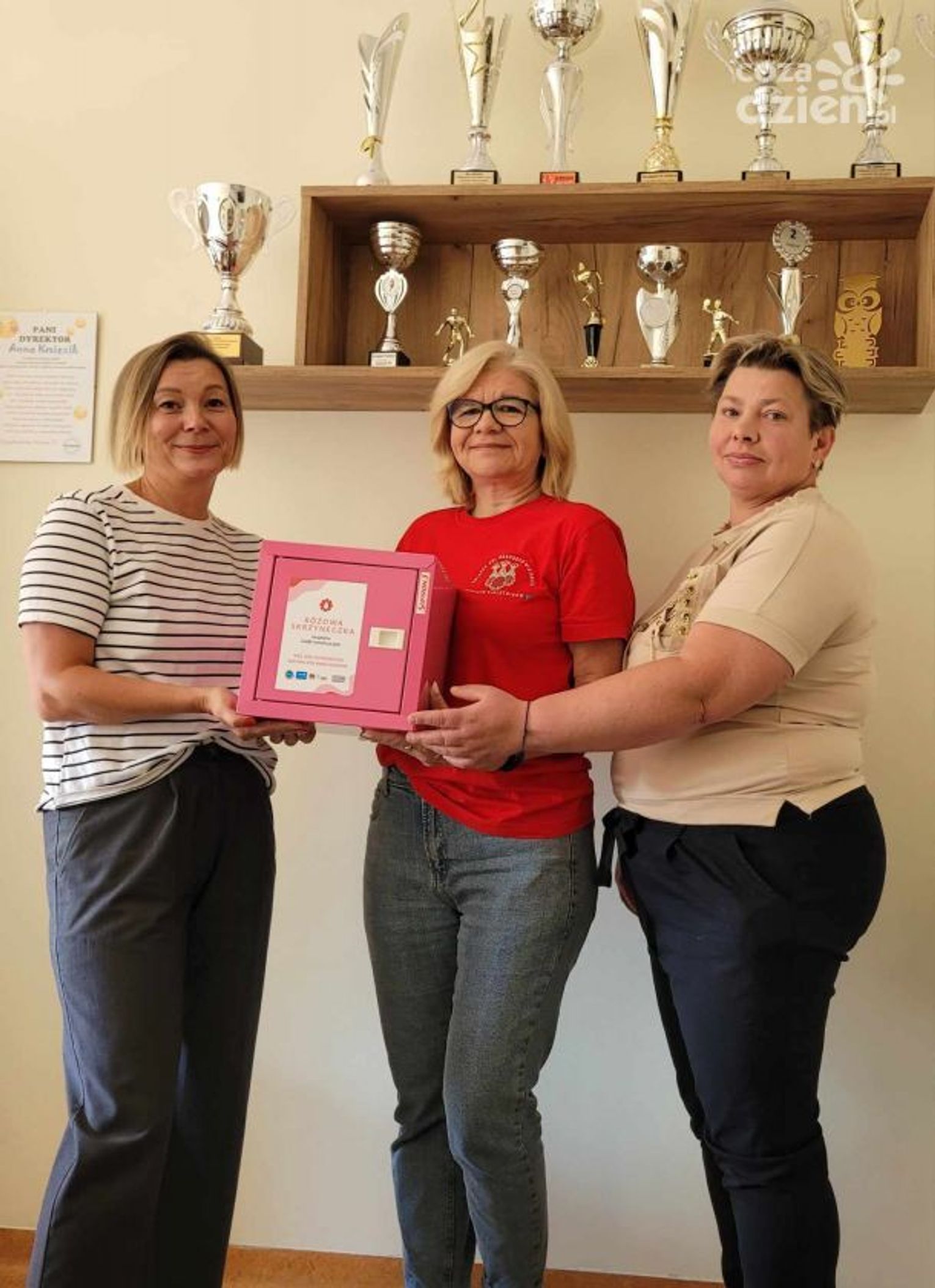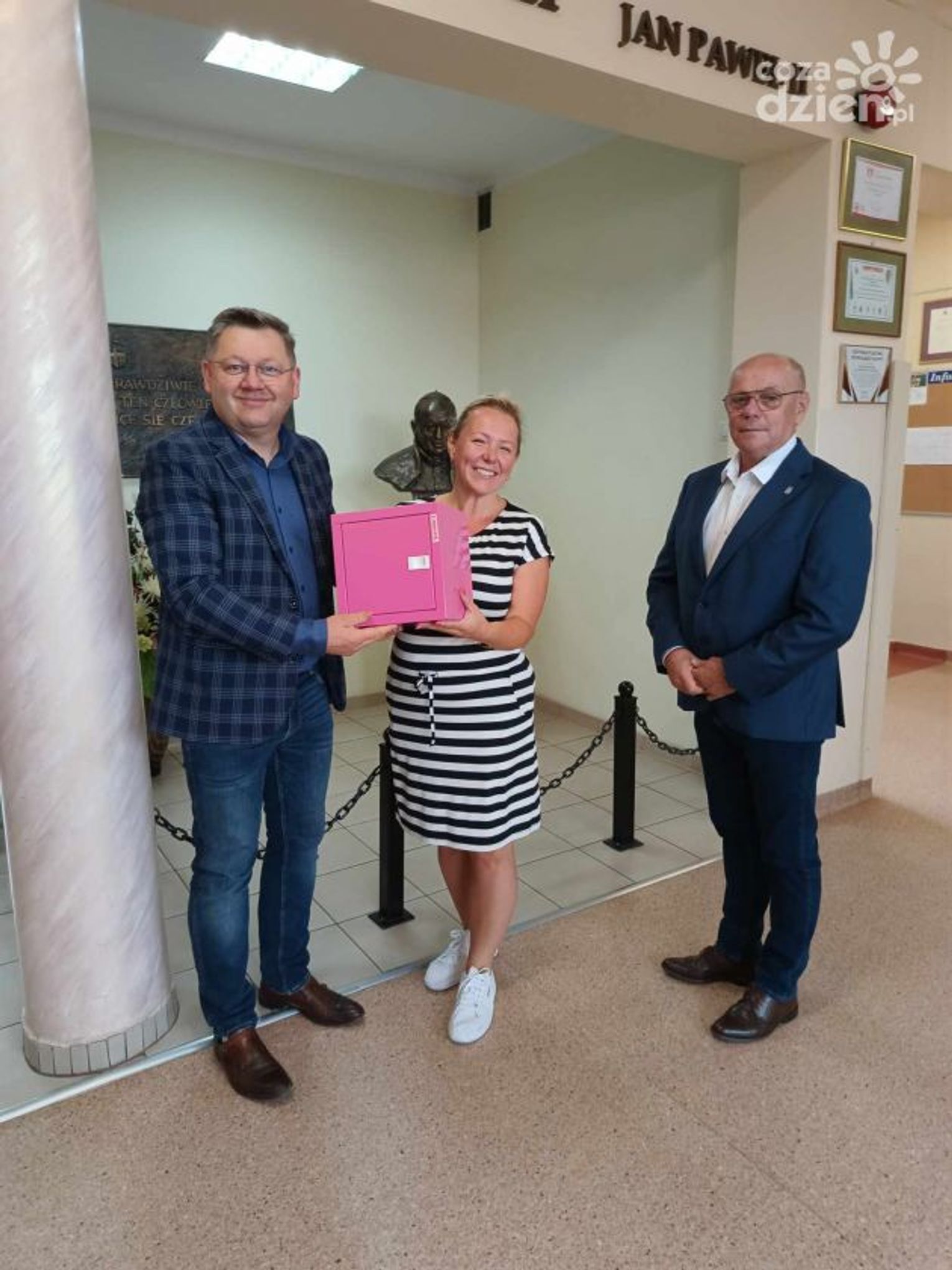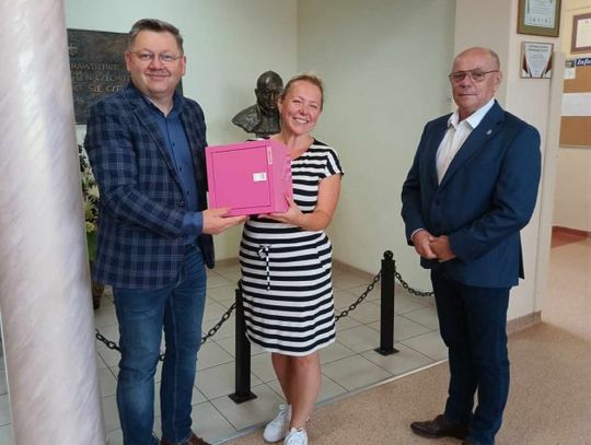 Dziś Różowe Skrzynki z pełnym wyposażeniem na rzecz społeczności szkolnej w Powiatowym Zespole Szkół w Łopusznie, Szkoły Podstawowej w Brynicy oraz Szkoły Podstawowej w Łopusznie przekazali Wiceprzewodnicząca Związku KGW Powiatu Kieleckiego Beata Mochocka oraz Pełnomocnik Starosty Kieleckiego ds. Współpracy z organizacjami Pozarządowymi Mariusz Brelski.