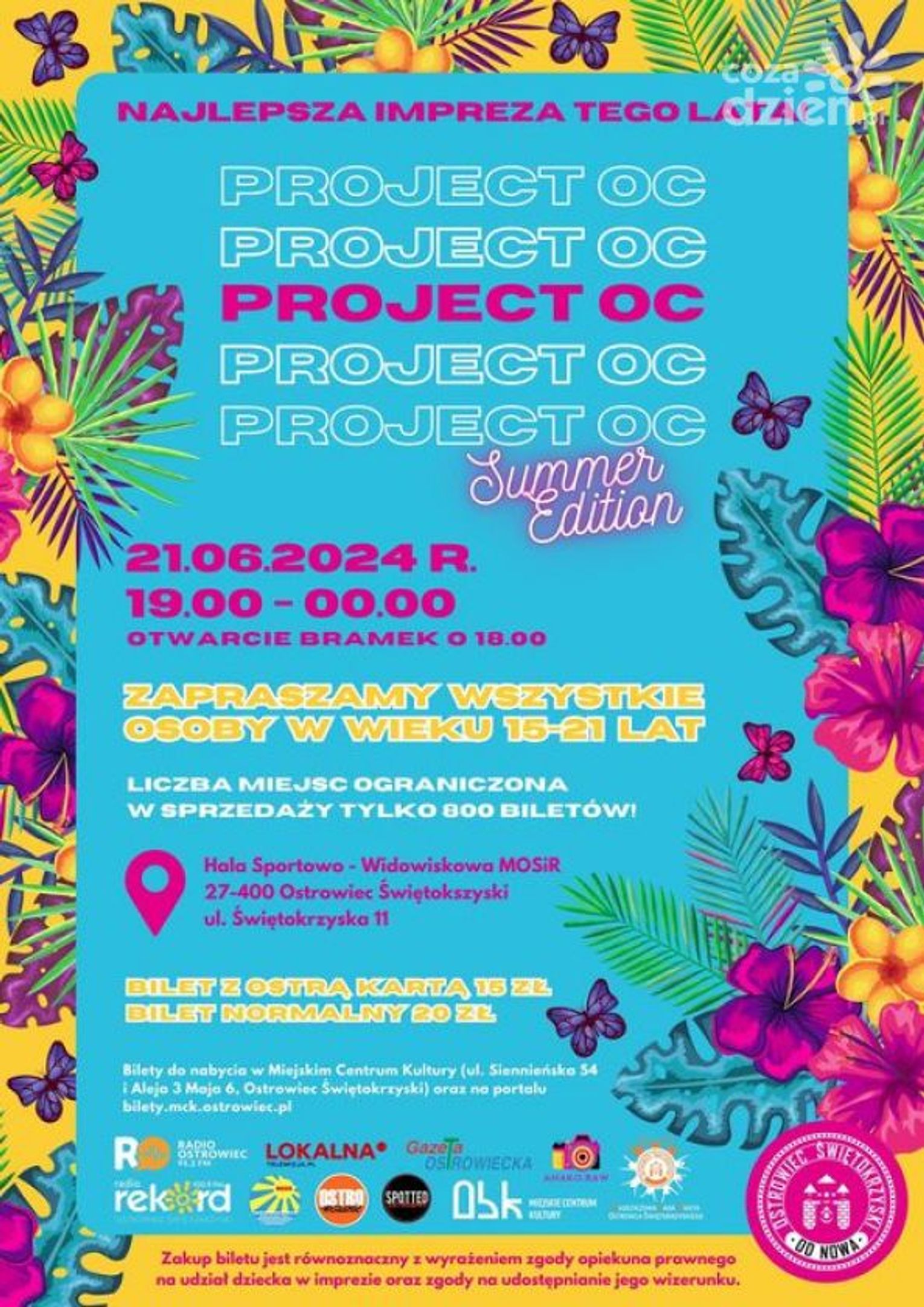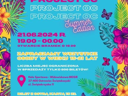 Młodzieżowa Rada Miasta wraz z Miejskim Centrum Kultury zapraszają na imprezę z okazji rozpoczęcia wakacji. Będzie to druga odsłona projektu nazwanego Project OC, czyli zabawa taneczna połączona z atrakcjami. A odbędzie się ona już w piątek 21 czerwca w Hali Sportowo – Widowiskowej MOSiR w Ostrowcu przy ulicy Świętokrzyskiej. Początek o godzinie 19 a finał o północy.
