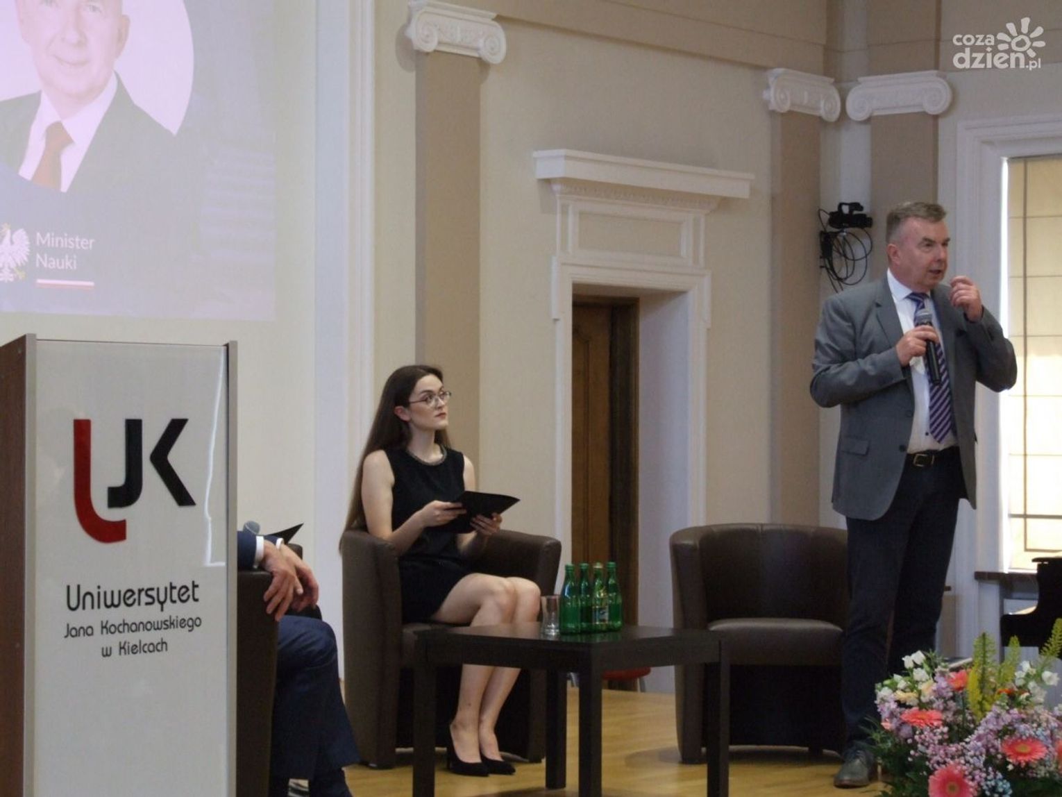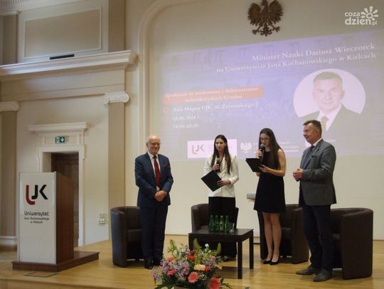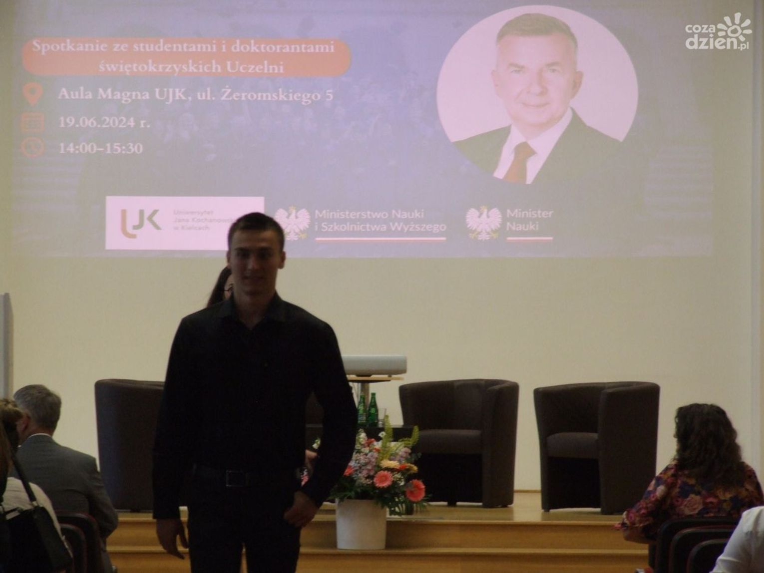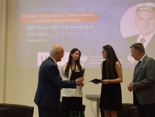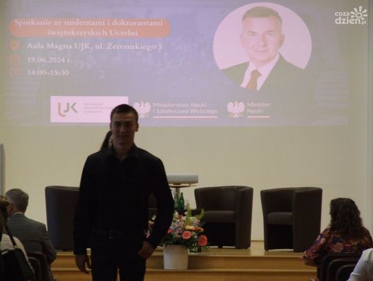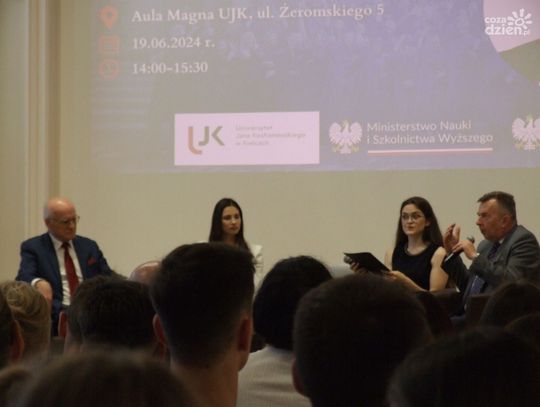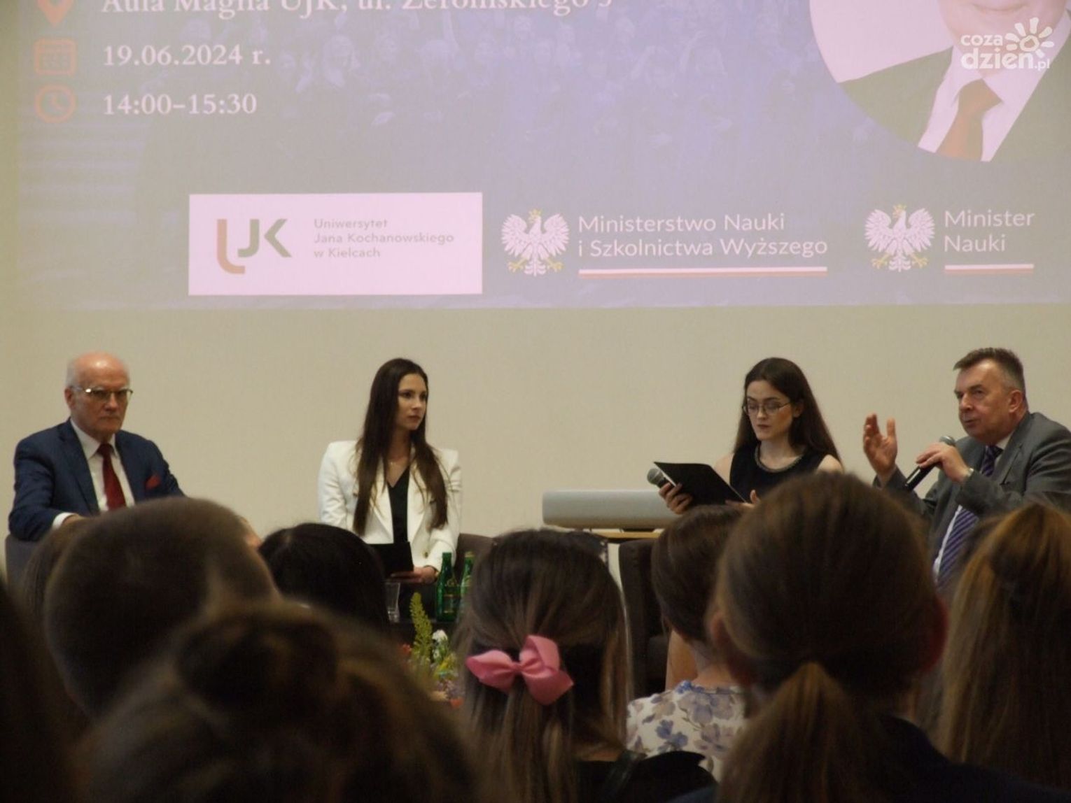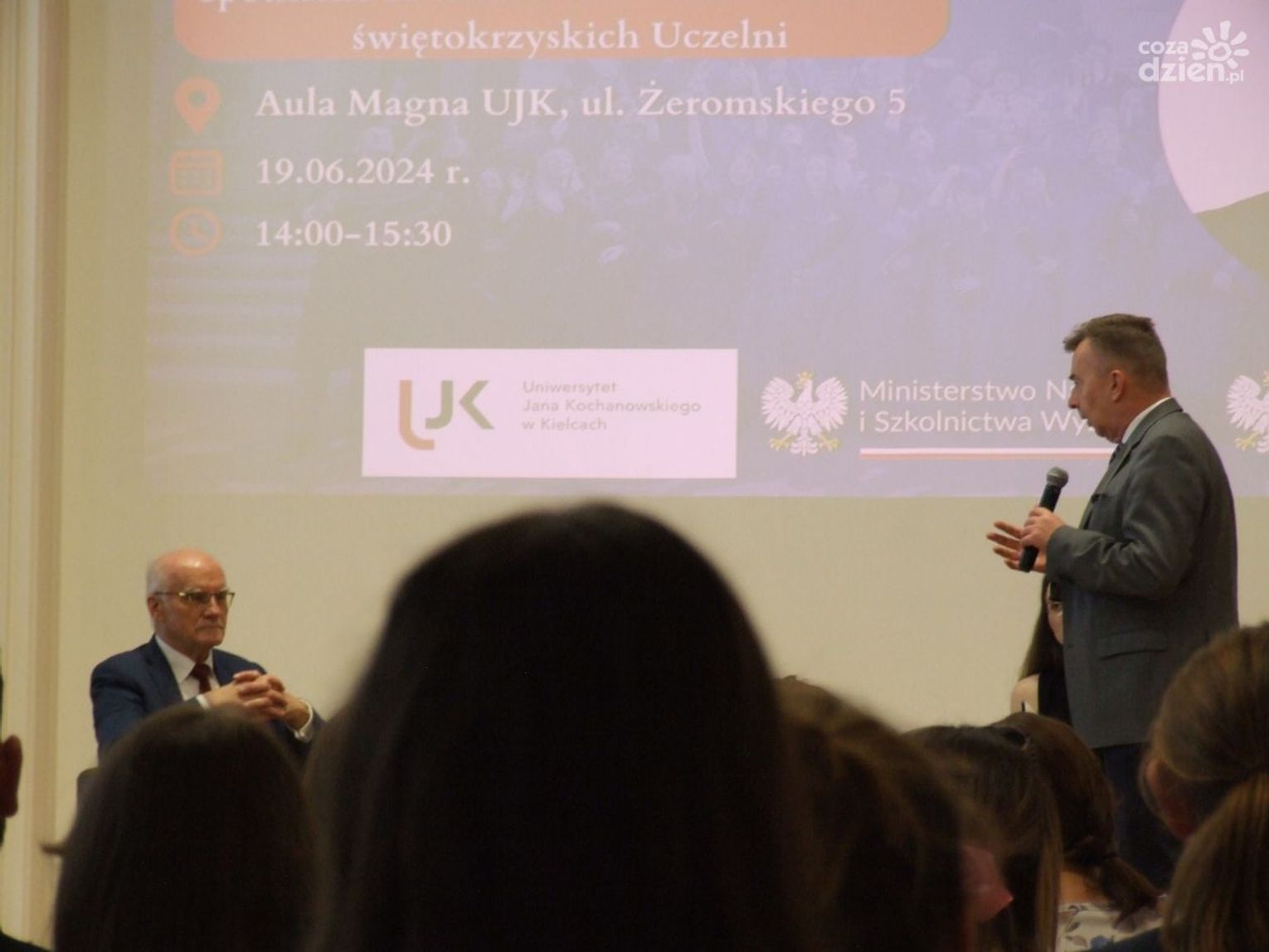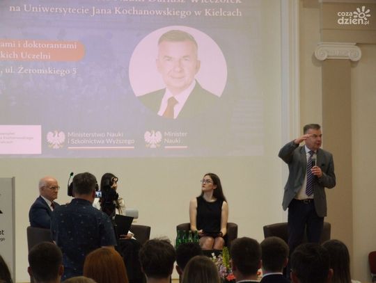 W środę 19 czerwca na Uniwersytecie Jana Kochanowskiego w Kielcach pojawił się minister Nauki i Szkolnictwa Wyższego - Dariusz Wieczorek. Odbył on spotkania z władzami uczelni, a następnie w południe miał miejsce briefing prasowy. O godzinie 14 w Auli Magna Rektoratu UJK odbyło się specjalne spotkanie z ministrem poprowadzone przez studentki uniwersytetu. Pytania mogli zadawać doktoranci i studenci wszystkich świętokrzyskich uczelni.