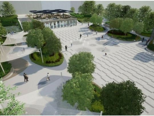 - Finalnie będziemy jeszcze sięgać po środki z innych źródeł. Na tej górnej części będzie likwidacja tych wszystkich barier architektonicznych dla osób niepełnosprawnych. Będzie to wszystko na płycie, na jednym poziomie. Docelowo jeszcze cały projekt będzie przewidywał, by w tej głównej części gdzie jest fontanna kaskadowa byłą kawiarnia.