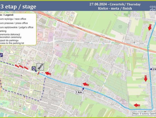 Miejski Zarząd Dróg w Kielcach informuje, że w czwartek 27 czerwca w związku z wyścigiem w godzinach 10.00 - 22.00 zamknięta jest dal ruchu kołowego zostanie północna jezdnia ul. Sandomierskiej na odcinku skrzyżowania z ul. Poleską do wjazdu Straży Pożarnej