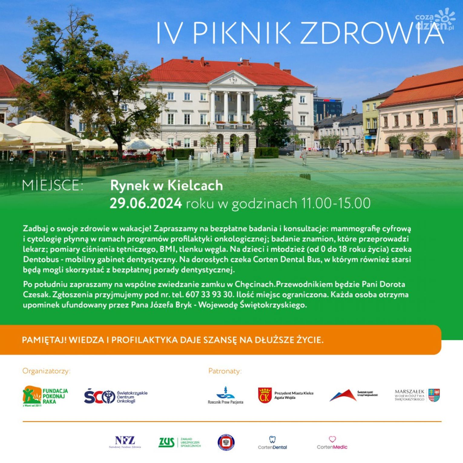 W sobotę, 29 czerwca w Kielcach na Rynku, w godz. 11.00-15.00 będą dostępne bezpłatnie: