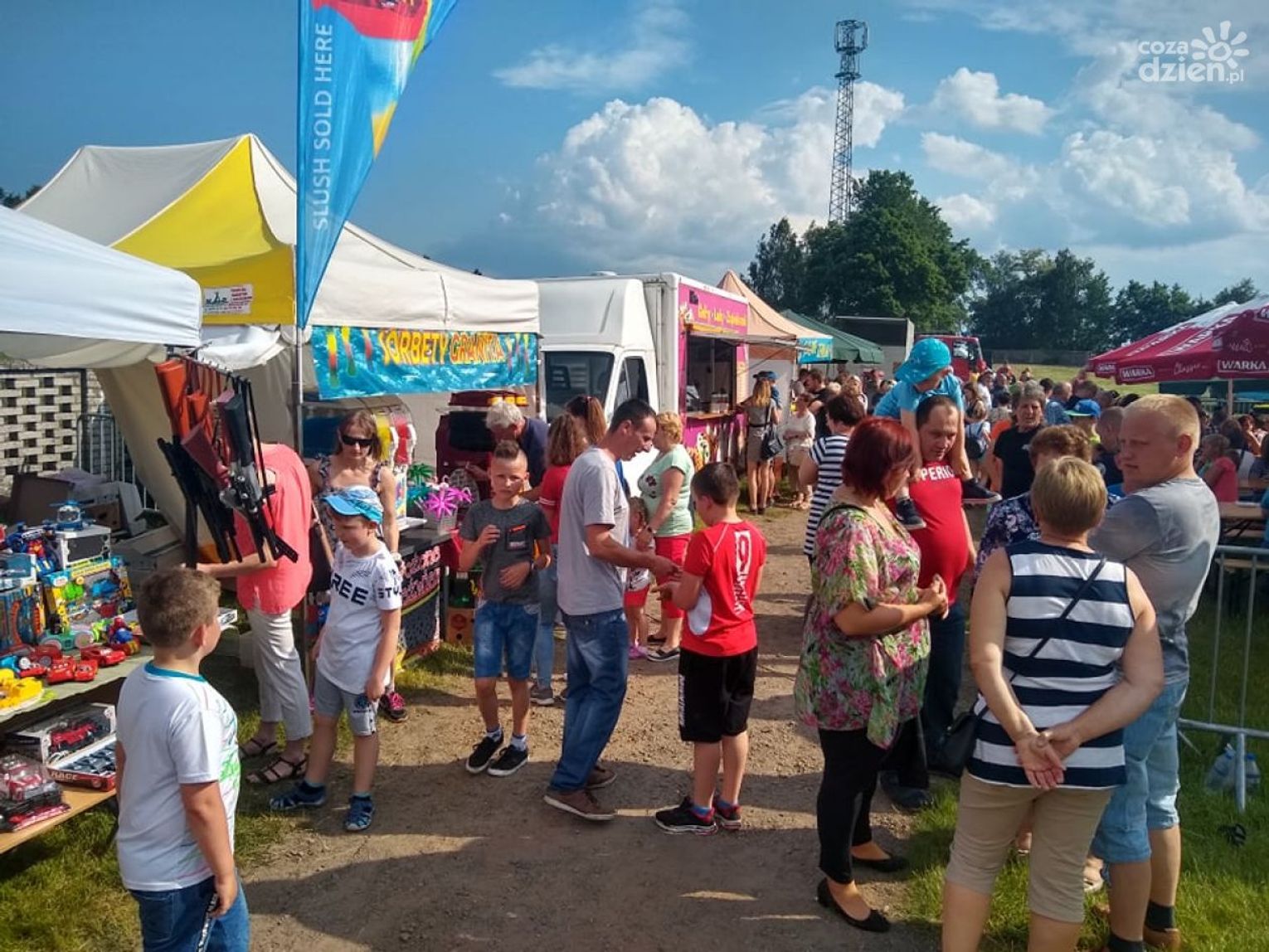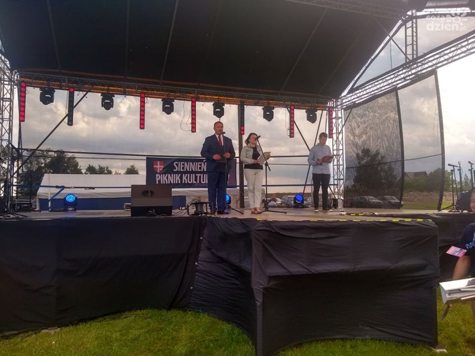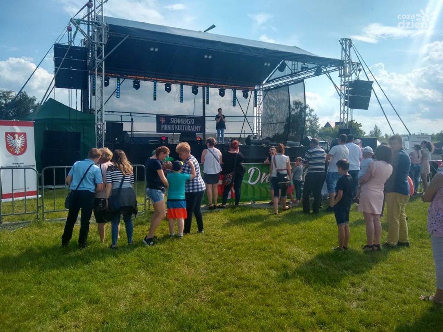 W sobotę efektami swojej pracy twórczej podzieli się członkowie grupy artystycznej - uczestnicy warsztatów malarstwa w GOK. Na otwartej uroczyście wystawie w Domu Praskim w Nowej Wsi swój dorobek pokazali: Krystyna Niedźwiedź, Danuta Kubiś, Ewa Szymaniak, Krystyna Ziemba, Małgorzata Malicka, Bożena Ryciak-Pospischil, Irena Słupek, Maria Batog i Halina Szczeblewska. W niedzielę z kolei, na placu targowym w Starej Wsi o godz. 15 wystartował wielki piknik rodzinny. Na scenie najpierw zaprezentowali się lokalni artyści - uczniowie Szkoły Muzycznej I stopnia w Siennie, Grupa Taneczna GOK, Grupa Teatralna "Sienniaki z GOK", wokaliści z GOK, Zumba Olechów i Candela Sienno. Następnie do tanecznej zabawy porwała wszystkich Kapela Bronka Machla i Kapela Podwórkowa u Maxa oraz zespoły: Alibi, Silvers, Champion, gwiazda wieczoru - Top One i DJ Trey Vinter. Oprócz muzyki, na uczestników pikniku czekało wiele innych atrakcji, min. emocjonujący turniej wsi, wielkie ognisko z kiełbaskami i rodzinne konkursy z nagrodami. Najmłodsi mogli wyszaleć się na dmuchańcach, czy postrzelać z gigantycznej procy. Było też malowanie twarzy.