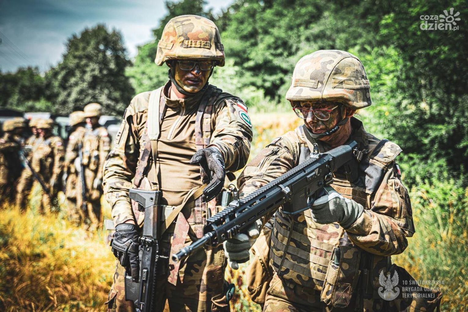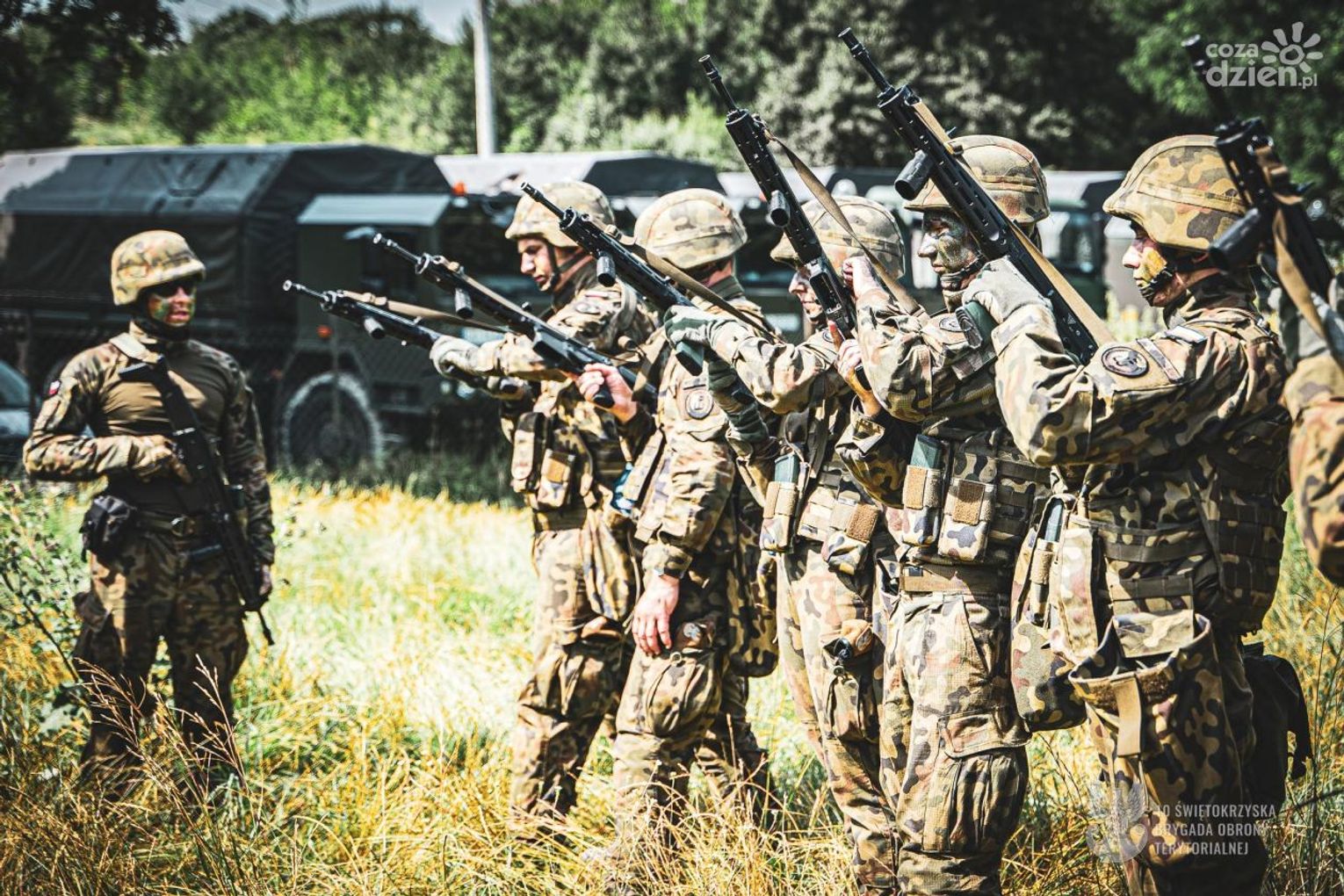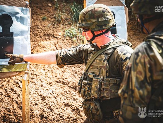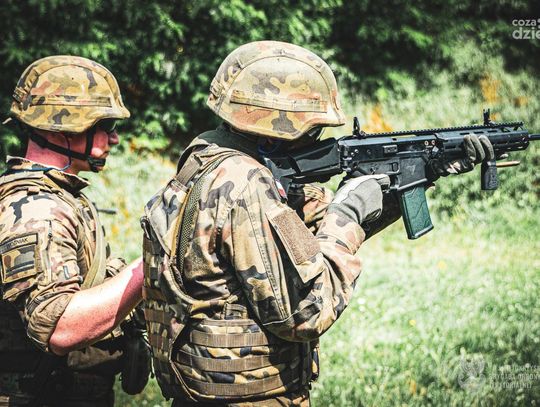Świętokrzyscy Terytorialsi kontynuują szkolenie podstawowe tzw. „szesnastkę”, którą rozpoczęli 6 lipca powołaniem blisko 70 ochotników. Dziś 12 lipca realizują zajęcia strzeleckie. Pierwsze strzelanie zostało zrealizowane na strzelnicy w Jędrzejowie. Przed tymi zajęciami ochotnicy w pierwszej kolejności musieli zdać egzamin poprzedzony szkoleniem z bezpiecznego posługiwania się bronią. Również w praktyce zaznajamiali się z obsługą broni podczas zajęć przygotowawczych by dziś finalnie strzelić pierwszy raz, ostrą amunicją z karabinka MSBS Grot. W szkoleniu instruktorów z 10 ŚBOT wspierają podchorążowie II roku z Wojskowej Akademii Technicznej realizujący praktyki. Świętokrzyscy Terytorialsi kontynuują szkolenie podstawowe tzw. „szesnastkę”, którą rozpoczęli 6 lipca powołaniem blisko 70 ochotników. Dziś 12 lipca realizują zajęcia strzeleckie. Pierwsze strzelanie zostało zrealizowane na strzelnicy w Jędrzejowie. Przed tymi zajęciami ochotnicy w pierwszej kolejności musieli zdać egzamin poprzedzony szkoleniem z bezpiecznego posługiwania się bronią. Również w praktyce zaznajamiali się z obsługą broni podczas zajęć przygotowawczych by dziś finalnie strzelić pierwszy raz, ostrą amunicją z karabinka MSBS Grot. W szkoleniu instruktorów z 10 ŚBOT wspierają podchorążowie II roku z Wojskowej Akademii Technicznej realizujący praktyki. Szkolonym żołnierzom, pierwszego dnia „szesnastki” wręczana jest broń, karabinek MSBS Grot z którym się nie rozstają przez 24 godziny. Takie rozwiązanie pozwala zbudować u żołnierzy odpowiedzialność - podkreśla płk Sławomir MACHNIEWICZ dowódca 10 ŚBOT. Dziś ważny dzień. Pierwsze strzelanie, było trochę stresu. Była również adrenalina. Dzięki naszym instruktorom udało się dobrze strzelić - dodaje szer. Karol lat 19 uczeń technikum. Szkolenie zakończy się sprawdzianem tzw. pętlą taktyczną podczas, której zostaną zweryfikowane nabyte umiejętności. Natomiast finałem szkolenia będzie przysięga wojskowa, która odbędzie się 21 lipca o godz. 11:00 na Kieleckiej Bukówce. Projekt „Wakacje z WOT” to doskonała okazja, aby wstąpić do Wojsk Obrony Terytorialnej. Skierowany jest on przede wszystkim do ludzi młodych, którzy stawiają swoje pierwsze kroki w dorosłym życiu. Wstępując do WOT mogą oni podjąć pierwsze poważne zobowiązanie i odbyć lekcję odpowiedzialności oraz jednocześnie w sposób aktywny i ciekawy spędzić wakacje. W okresie tym wyzwanie podjąć mogą także rodzice, nauczyciele oraz wszyscy, którzy chcą dobrze wykorzystać swoją przerwę wakacyjną. Szesnastodniowe szkolenie podstawowe jest szansą na rozpoczęcie kariery wojskowej, a uczestnictwo w kolejnych szkoleniach rotacyjnych umożliwia ciągły rozwój wojskowego rzemiosła.