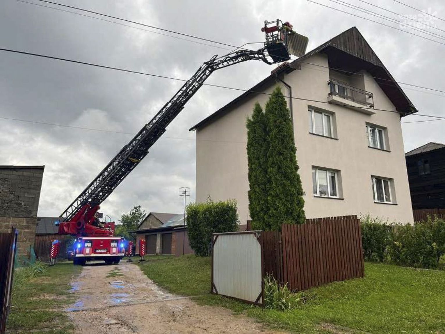 Najtrudniejsza akcja miała miejsce w Czerwonej Górce. - Tu przechodząca burza zerwała dach z jednego z budynków mieszkalnych i przerzuciła go na sąsiedni budynek - mówi mł. bryg. Mariusz Kuźdub z KP PSP w Skarżysku-Kamiennej.