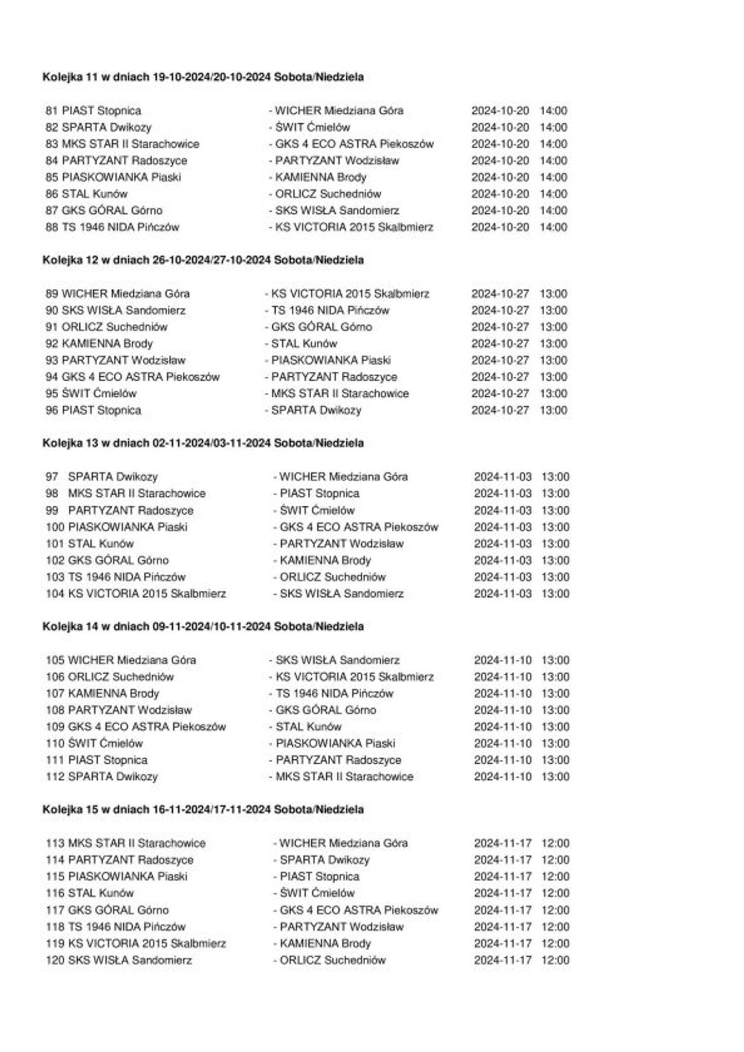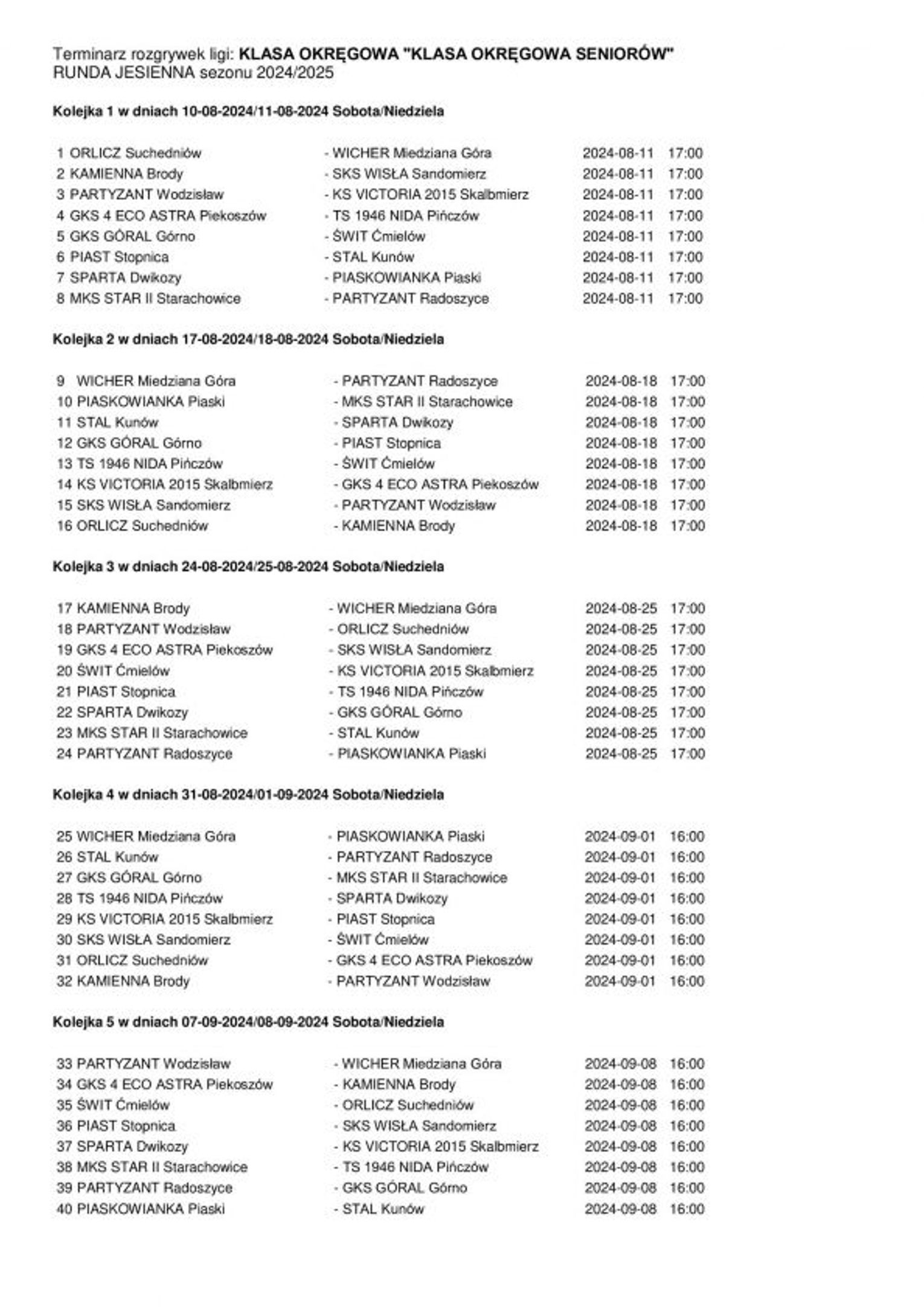 W każdej kolejce zaplanowanych jest osiem spotkań. Będzie to gratka dla amatorów niższych klas rozgrywkowych.