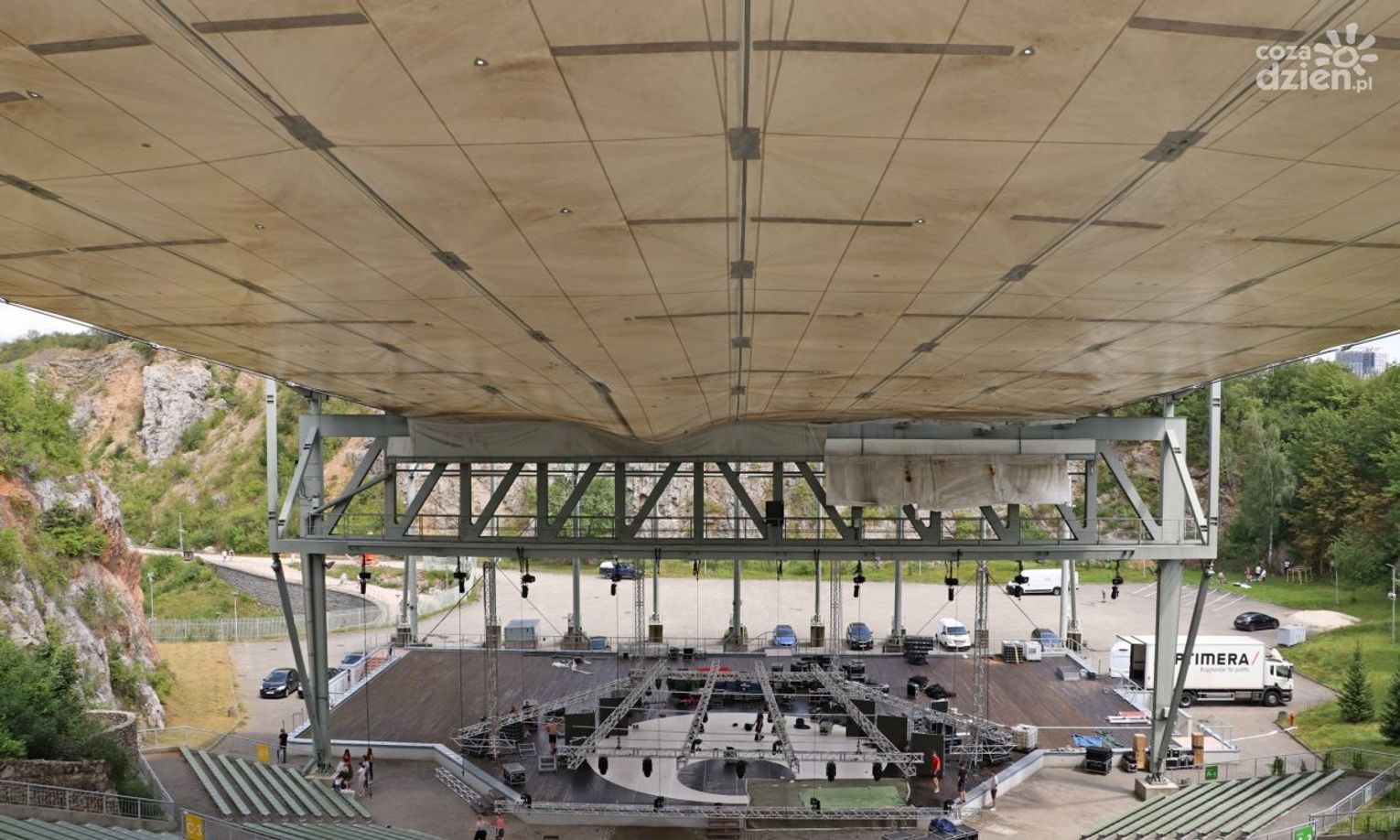 Membrana dachowa nad widownią Amfiteatru Kadzielnia została uszkodzona podczas nawałnicy, która przeszła przez miasto w nocy z 13 na 14 lipca.