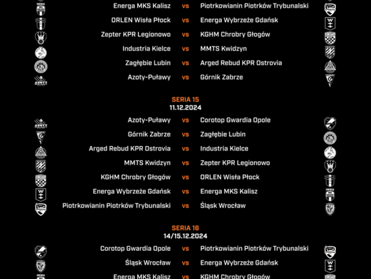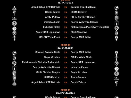 – 30 listopada/1 grudnia: ostatnia seria I rundy fazy zasadniczej
