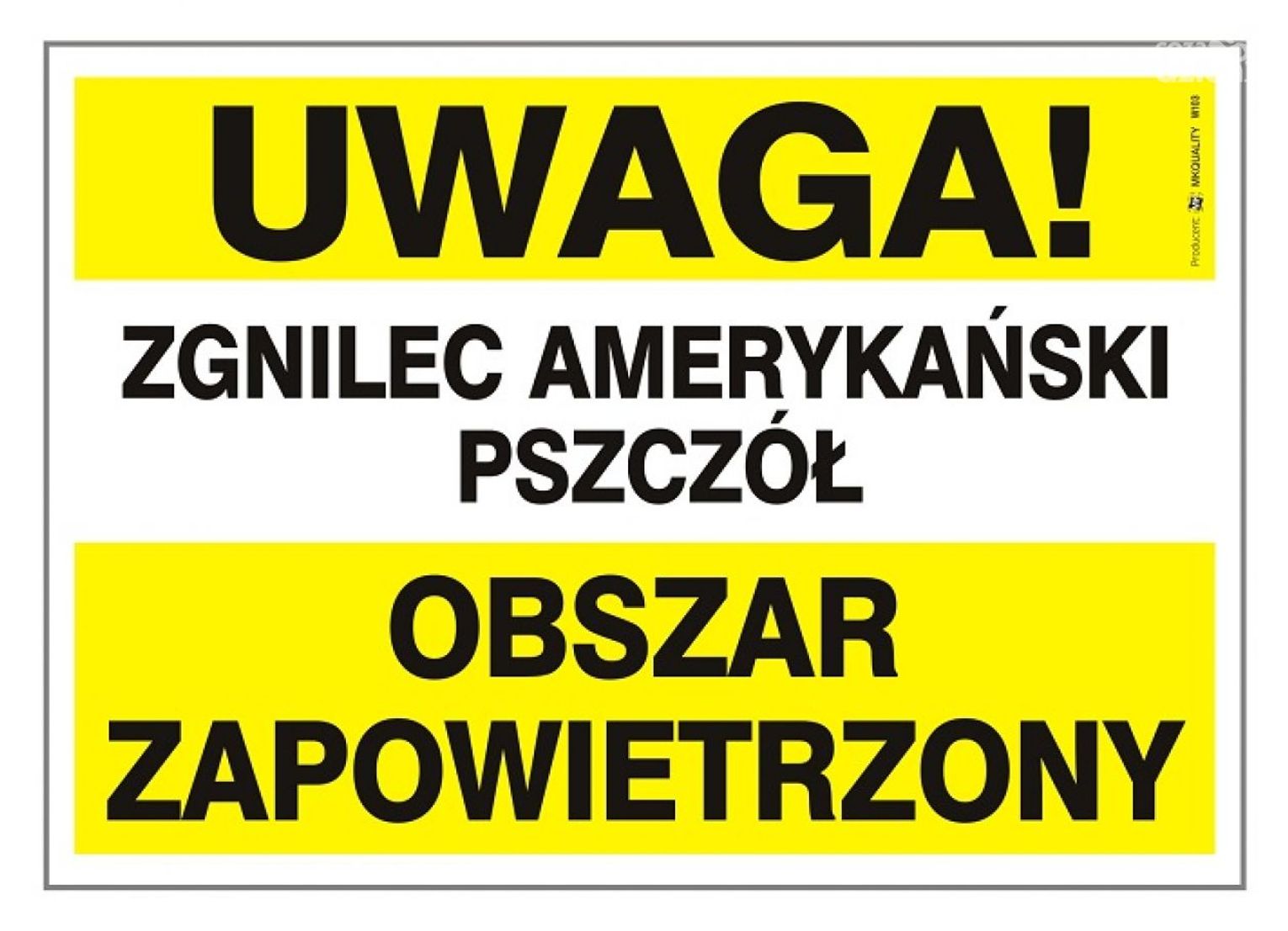 Obszaru zapowietrzony będzie oznakowany tablicami ostrzegawczymi z napisem „Uwaga. Zgnilec amerykański pszczół. Obszar zapowietrzony”.