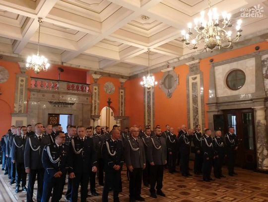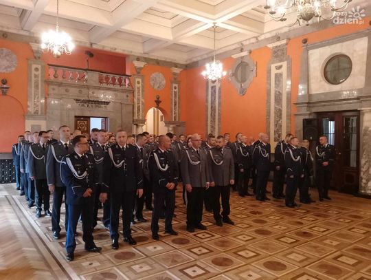 - Dziś to święto obchodzone jest w Komendzie Miejskiej Policji w Kielcach. Uroczysty apel podczas, którego funkcjonariusze odbiorą akty mianowania na wyższe stopnie policyjne. Są również funkcjonariusze, którzy uzyskają swój pierwszy awans podczas swojej służby w policji. Podczas dzisiejszej uroczystości pięciu funkcjonariuszy otrzyma z rąk Pani Prezydent Agaty Wojdy, a także Pana Starosty Powiatu Kieleckiego- Tomasza Plebana. Są to mundurowi, którzy zostali wyróżnieni za swoją służbę- mówiła oficerka prasowa Małgorzata Perkowska-Kiepas.
