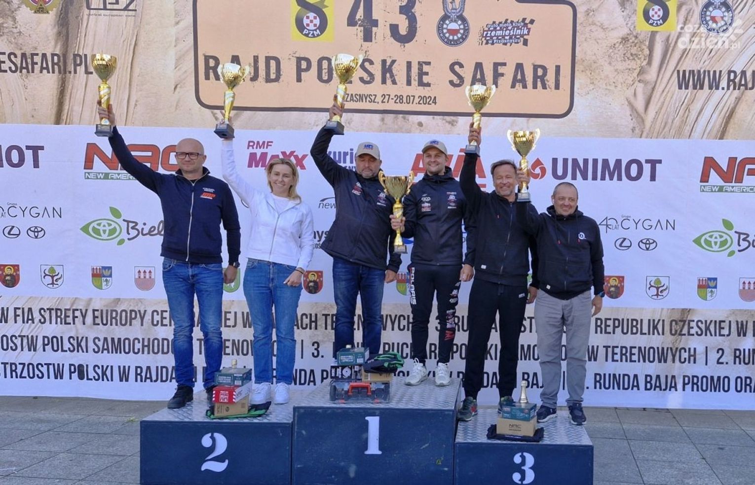 Na najniższym stopniu podium stanęli Kuś i Tsyro (Grally OT3), tracąc kolejnych 8 sekund do Macieja Giemzy i Rafała Martona. Karol Lenkiewicz i Dominik Ragiel, którzy prowadzili aż do ostatniej próby, wypadli z czołowej trójki i ostatecznie ukończyli 43. Rajd Polskie Safari na czwartym miejscu.