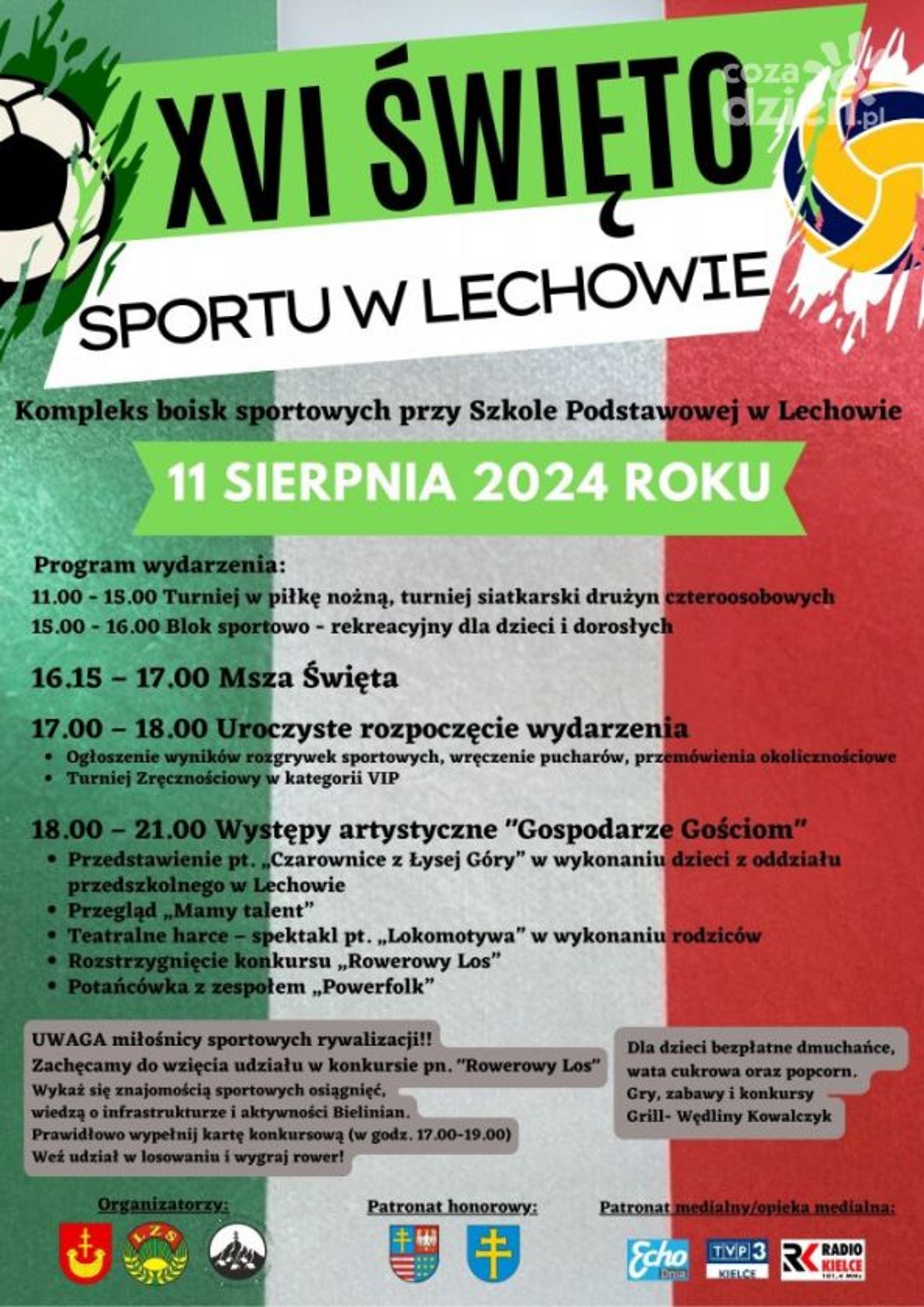 W trakcie powyższych aktywności będzie trwać konkurs "Rowerowy las", w którym uczestnicy będą musieli wykazać się wiedzą sportowych osiągnięć, znajomością infrastruktury i aktywności Bielinian. Do wygrania będzie nowy rower. Dodatkowo organizator poinformował, że dla dzieci będą dmuchańce, wata cukrowa, także popcorn.