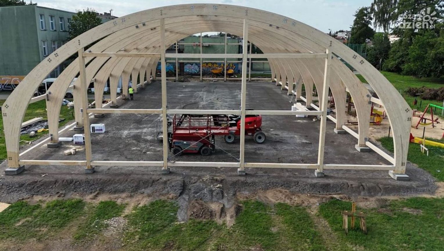 Dodatkowo w ramach zagospodarowania terenu wokół szkoły przebudowana zostanie również droga pożarowa, plac zabaw oraz dojścia o nawierzchni utwardzonej z kostki brukowej. Planowana jest przebudowa też budynku szkoły pod sanitariaty i przebieralnie.
