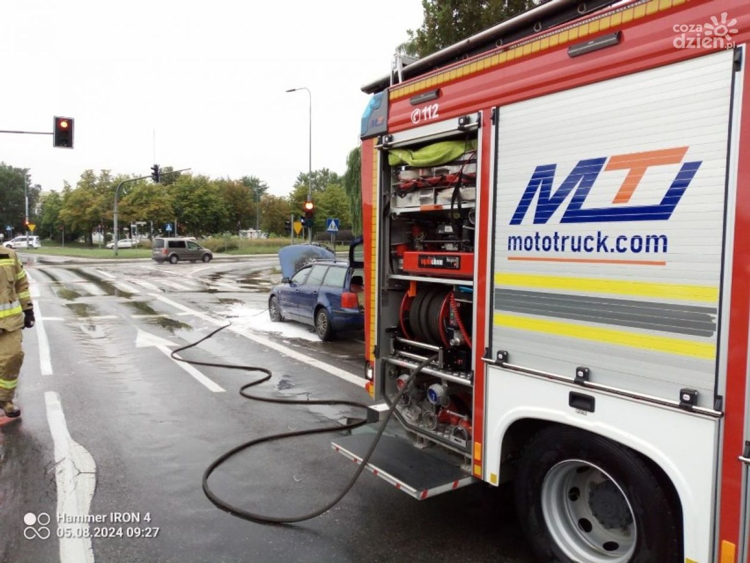 Jak informuje straż pożarna, zgłoszenie o pożarze auta na skrzyżowaniu kieleckich ulic służby otrzymały w poniedziałek po godz. 9.00.