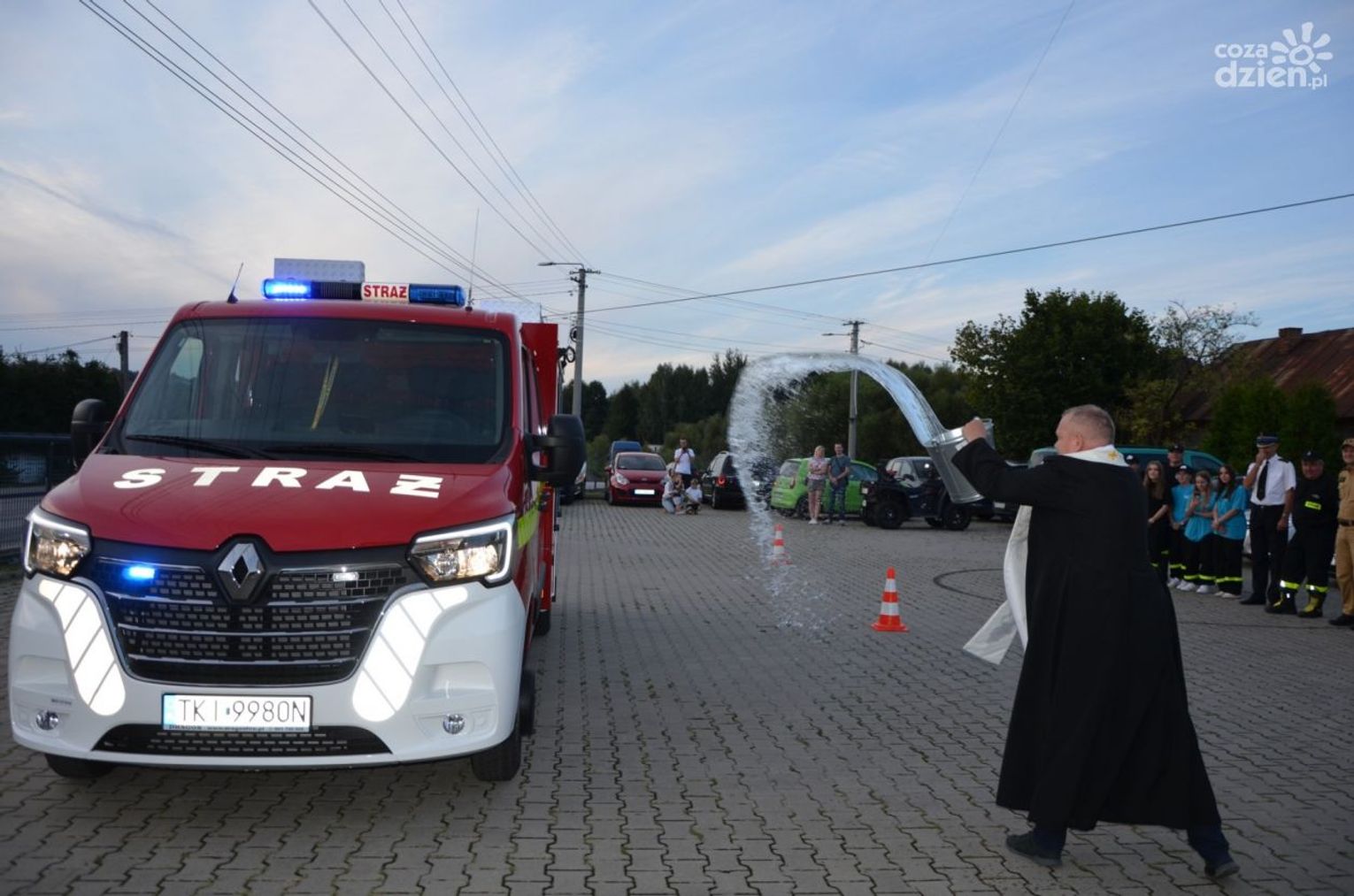Nowy wóz gaśniczy został uroczyście wprowadzony do jednostki. Towarzyszyła temu strażacka oprawa z racami i syrenami samochodów gaśniczych.