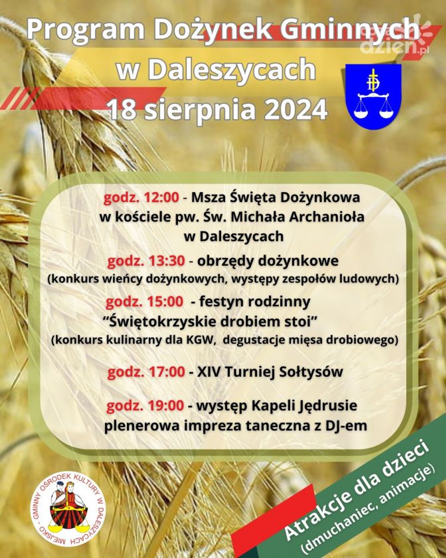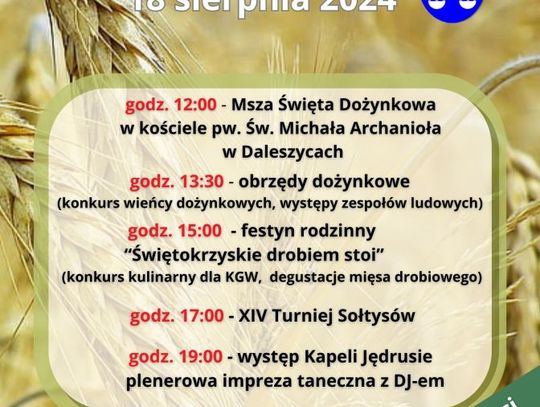 Na zakończenie Święta Plonów najpierw wystąpi Kapela Jędrusie, a później odbędzie się plenerowa impreza taneczna z DJ'em.
