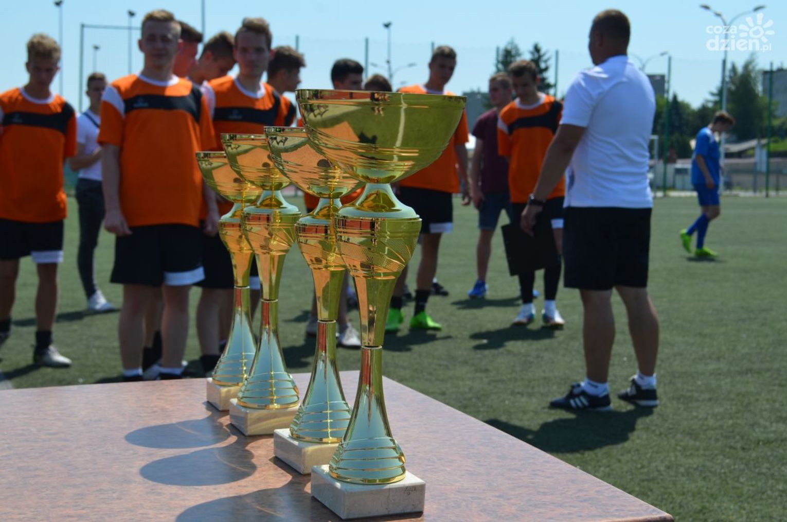 Puchary w imieniu starosty opatowskiego Tomasza Stańska wręczył organizator turnieju - Marcin Stańczyk, dyrektor Zespołu Szkół w Ożarowie.
