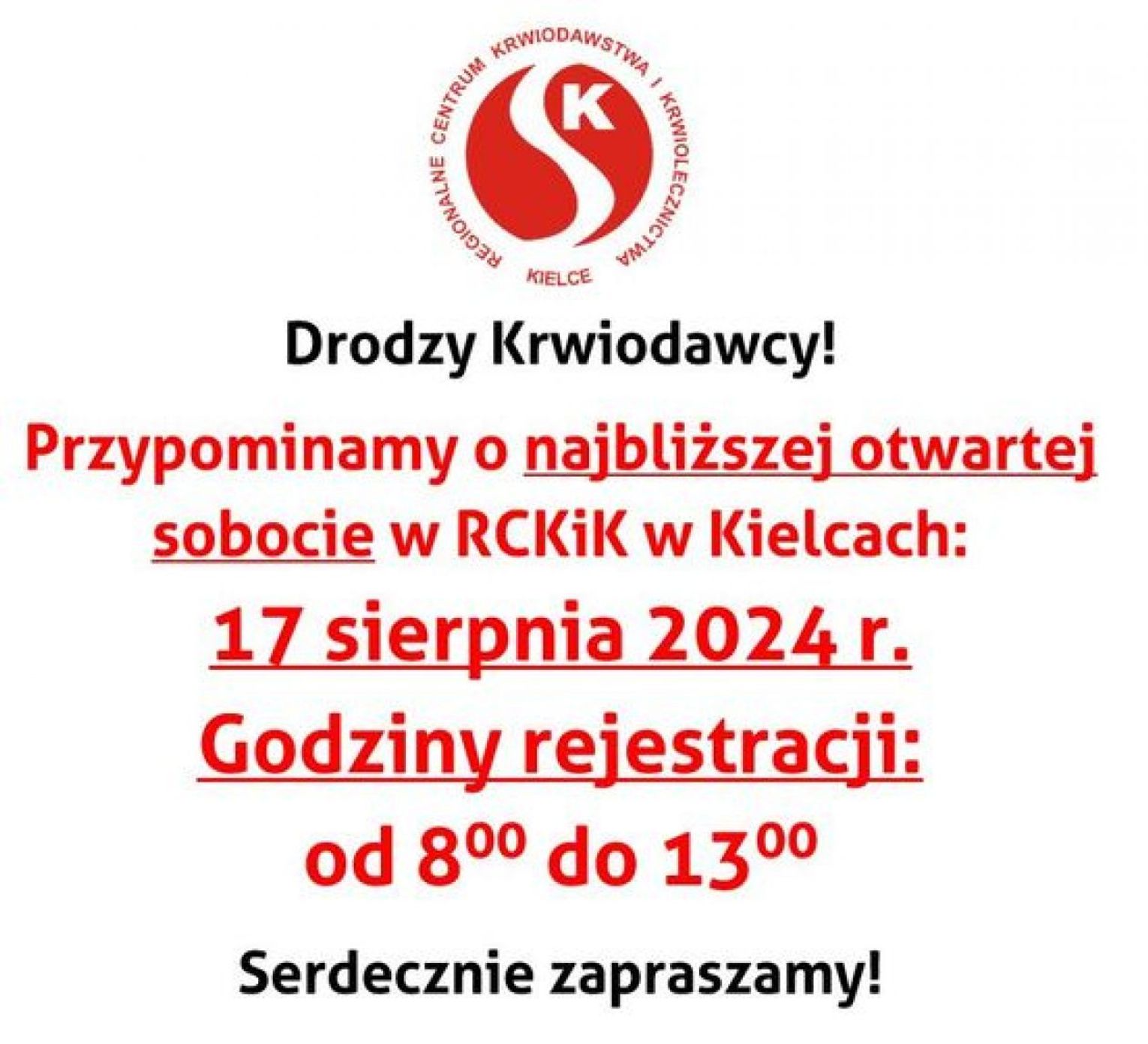 Regionalne Centrum przygotowało także ofertę wraz w porozumieniu z Koroną Kielce. W każdy wtorek za oddanie krwi lub jej składników można otrzymać bilet na domowe spotkanie Korony Kielce. W tym przypadku będzie to poniedziałkowe starcie rozegrane 26 sierpnia o godzinie 19.00 ze Stalą Mielec.