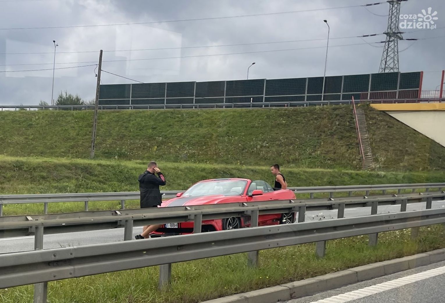 Na węźle Kielce Zachód, a konkretnie na DK 74 na pasie w stronę Kielc, doszło do zdarzenia drogowego. Ford Mustang zderzył się z barierką energochłonną.