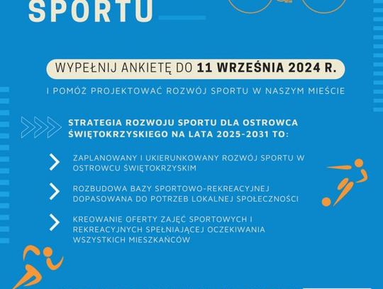Ankieta jest dostępna na portalu ostrowieckiego MOSiR i Co za dzień Świętokrzyskie. Czas jej wypełnienia to około 10-15 minut. A można wypełniać 11 września.