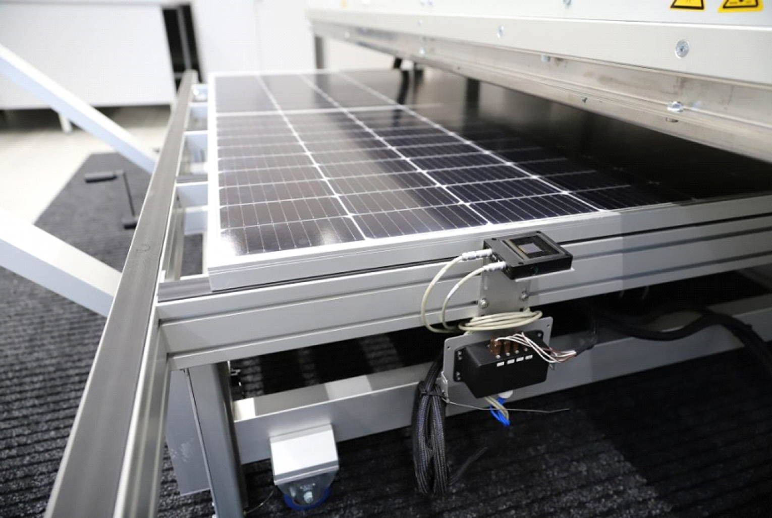Fot. 1 Moduł PV podczas badania w Symulatorze światła ciągłego EternalSun