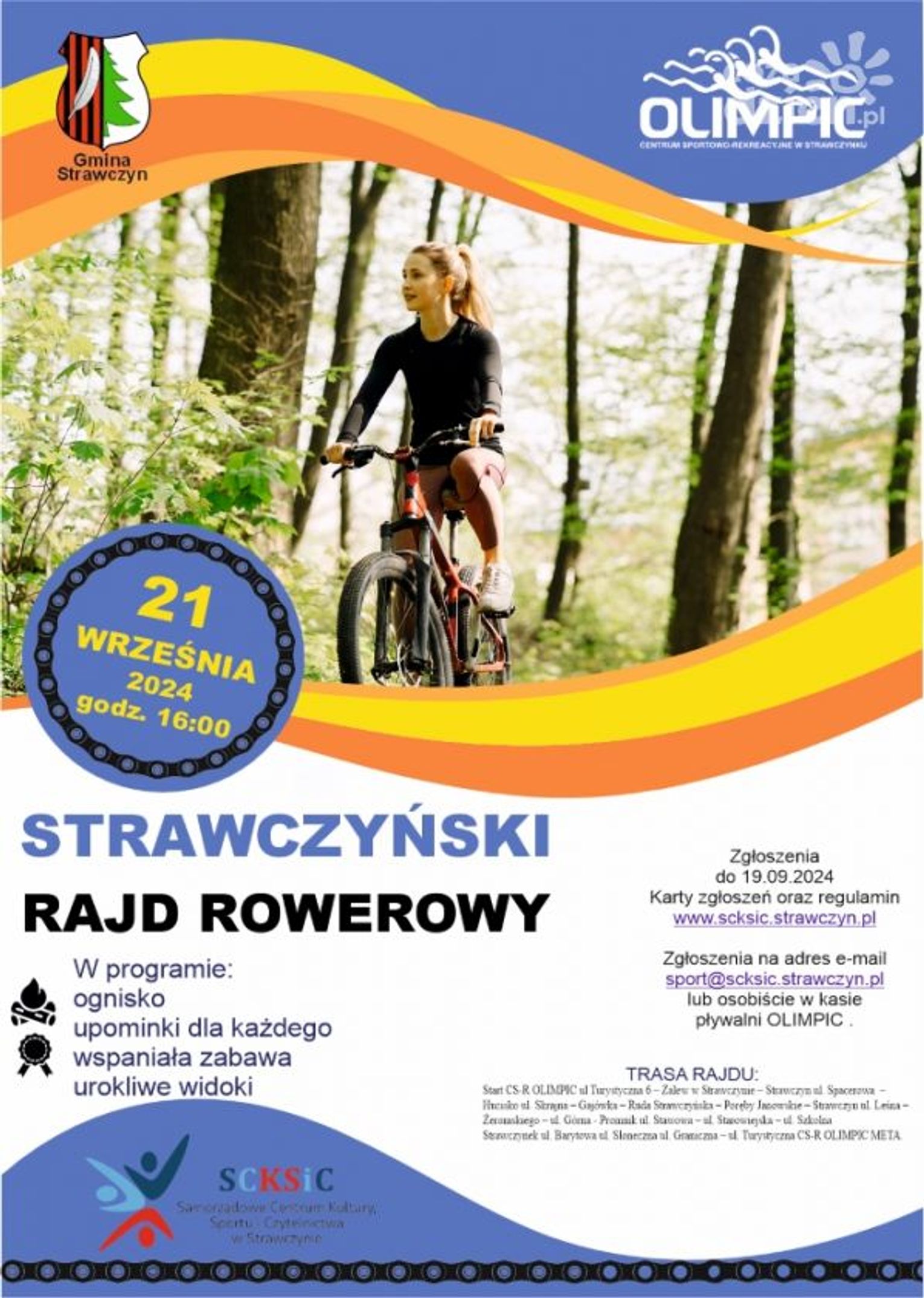 Zbiórka uczestników Rajdu odbędzie się na parkingu przy Centrum Sportowo- Rekreacyjnym OLIMPIC o godzinie 15:45. Planowo rajd będzie trwał do godziny 19:30.