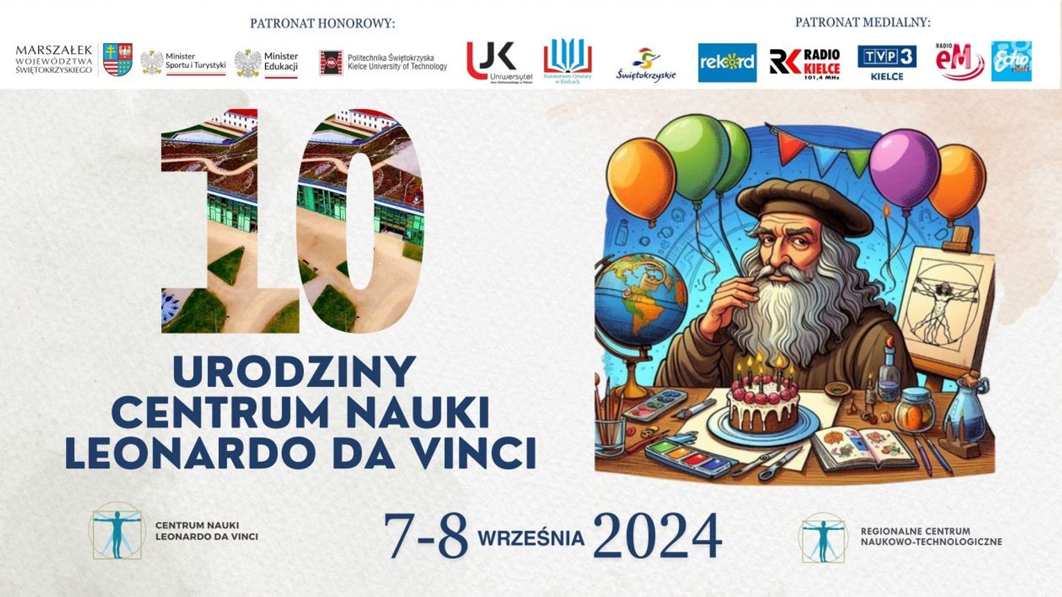 W urodziny zaplanowaliśmy także oficjalną inaugurację najnowszej wystawy czasowej w Centrum Leonardo da Vinci - „Serce - pompa doskonała”. Patronat nad urodzinami Centrum sprawują Marszałek Województwa Świętokrzyskiego, Ministerstwo Edukacji Narodowej, Ministerstwo Sportu i Turystyki, Świętokrzyski Kurator Oświaty, Regionalna Organizacja Turystyczna Województwa Świętokrzyskiego, Uniwersytet Jana Kochanowskiego w Kielcach, Politechnika Świętokrzyska.