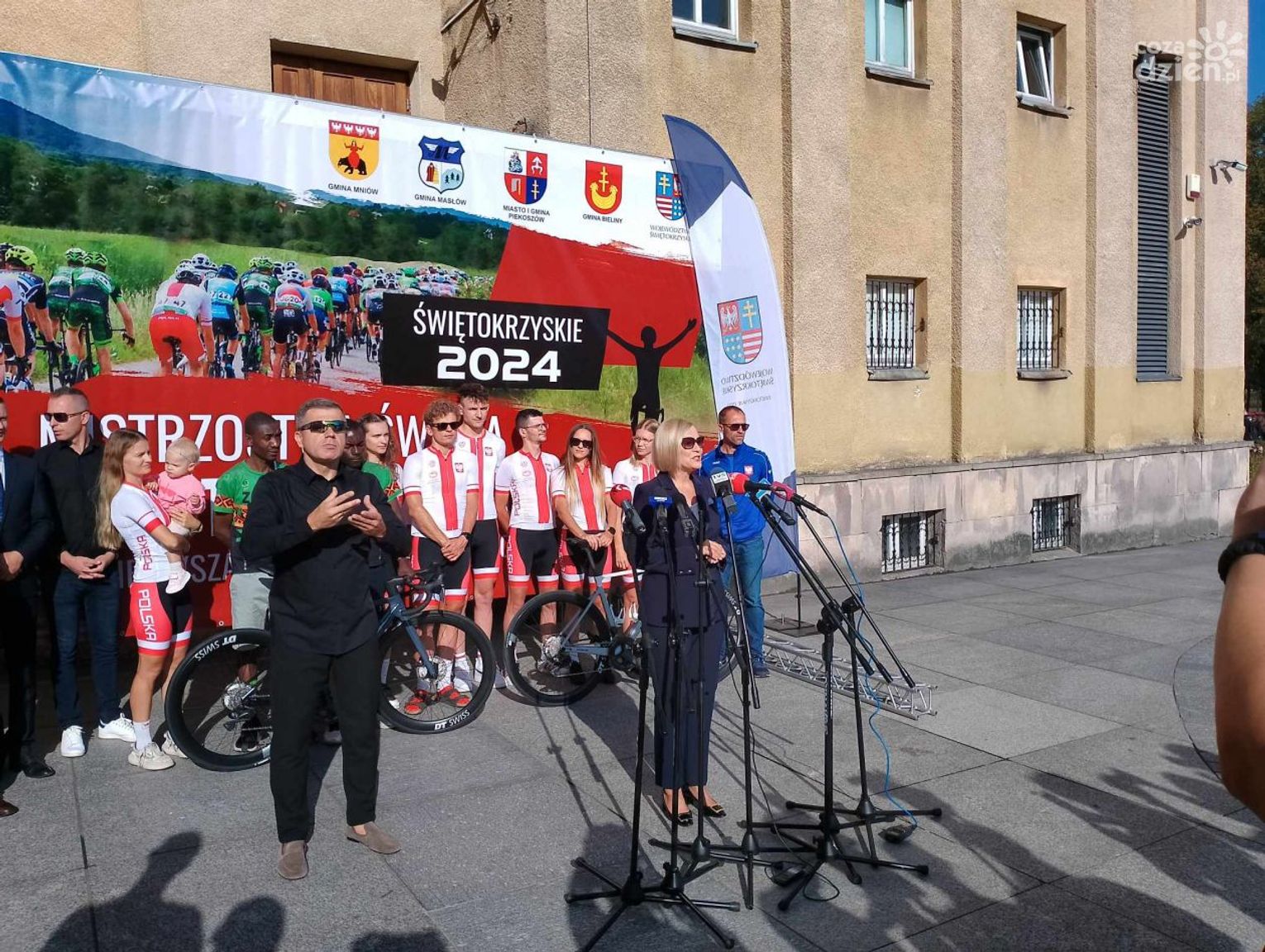 - Szanowni Państwo w imieniu Zarządu Województwa Świętokrzyskiego bardzo się cieszę, że po raz pierwszy w historii naszego województwa, ale również i w historii Polski, międzynarodowe zawody w kolarstwie szosowym odbędą się właśnie, u nas w naszym pięknym Świętokrzyskim, gdzie nasze usytuowanie tereny pozwalają na odbycie tego typu zawodów. Cieszę się, że dzięki wsparciu samorządu województwa w wysokości 96 tysięcy złotych, a także gmin, które są partnerami tego wydarzenia, te zawody mogą się odbyć. Ale w sposób szczególny bardzo serdecznie dziękuję, z serca dziękuję wszystkim osobom zaangażowanym w to przedsięwzięcie.- mówiła Renata Janik marszałek województwa świętokrzyskiego.