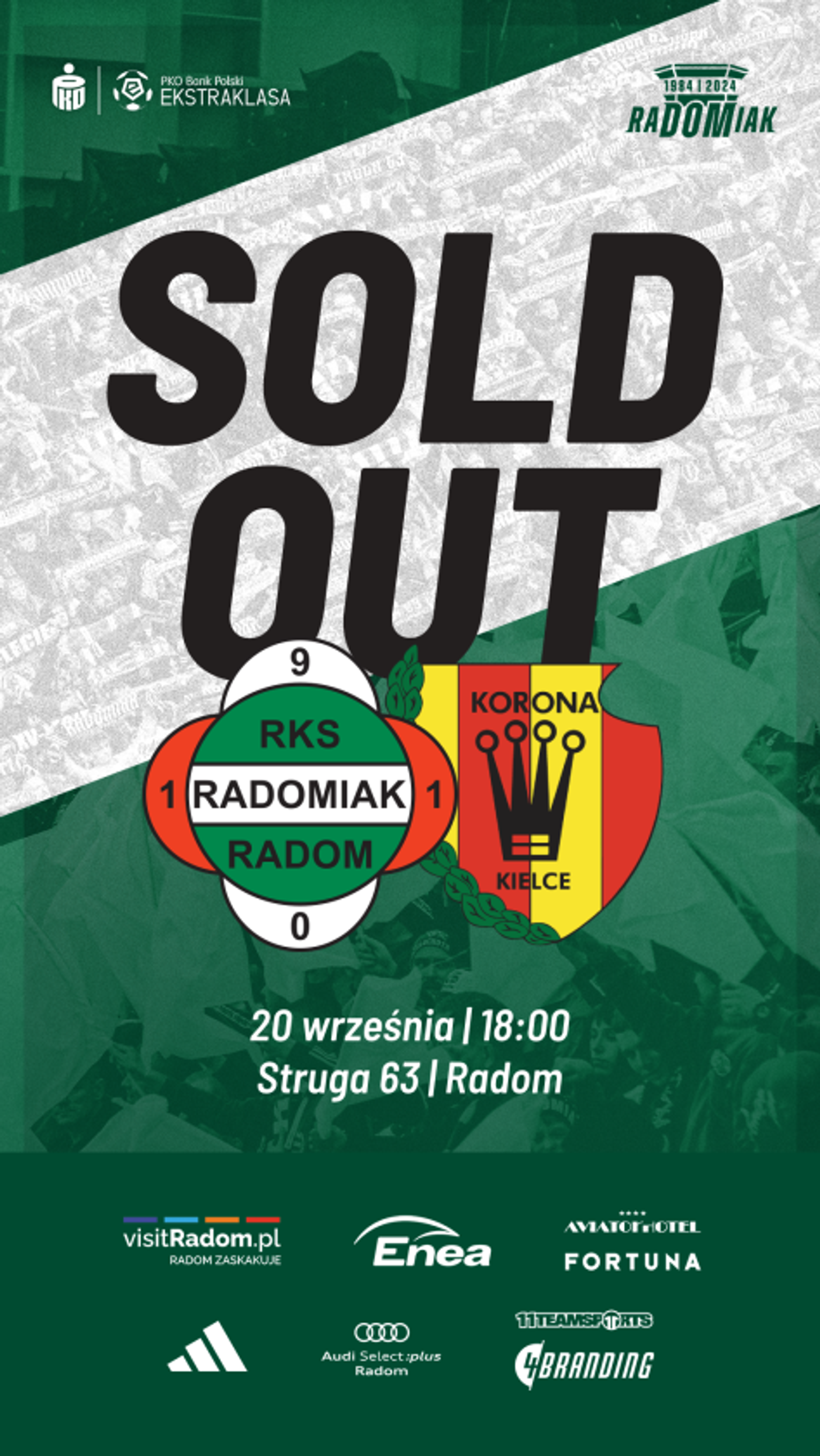 Radomiak Radom poinformował, że stadion przy ulicy Struga 63 został wyprzedany. ,,Święta Wojna" po raz kolejny przyciąga tłumy kibiców na stadion.