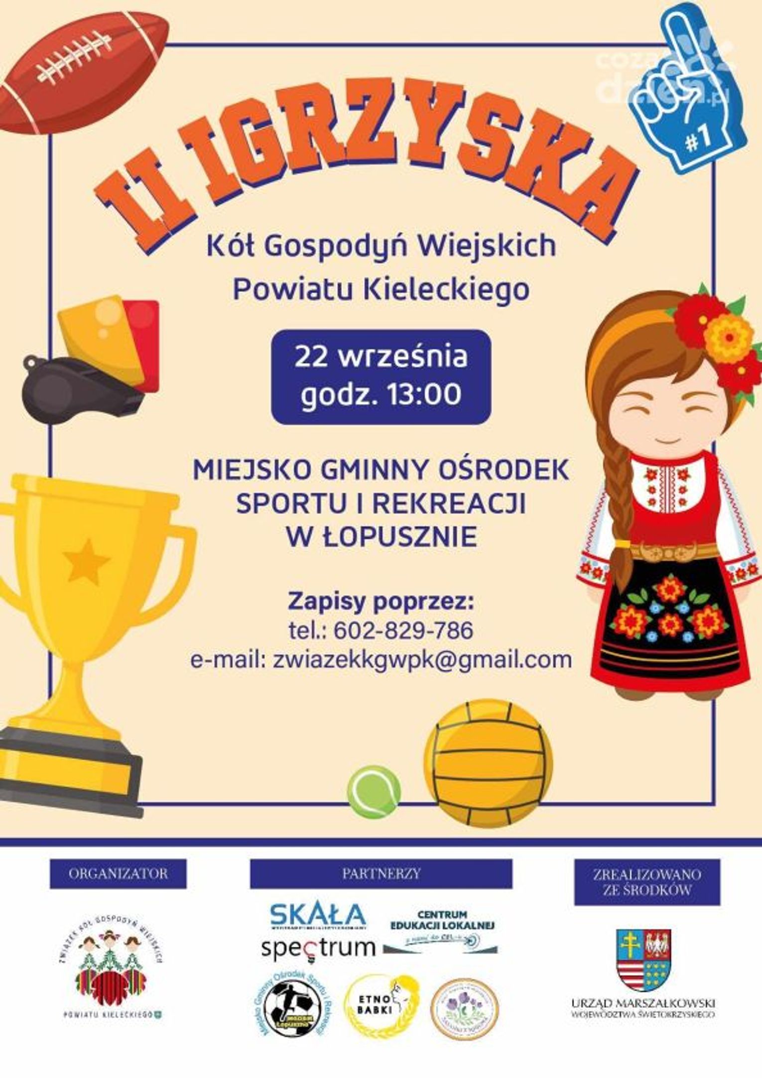 Już 22 września zorganizowane odbędą się II Igrzyska Kół Gospodyń Wiejskich Powiatu Kieleckiego. Za organizację wydarzenia odpowiedzialny jest Związek Kół Gospodyń Wiejskich Powiatu Kieleckiego. Na uczestników czekać będzie wiele konkurencji sportowych, a także swojskie jadło. Dla zwycięzców przewidziane są nagrody.