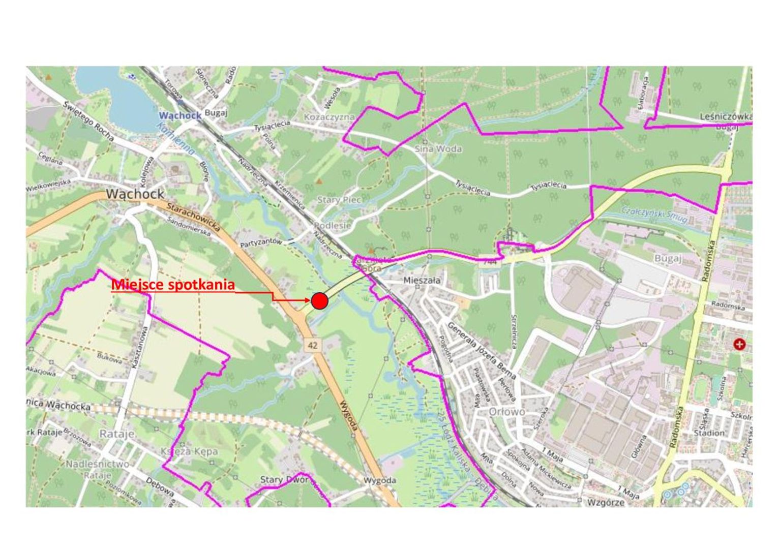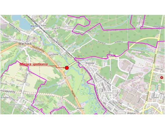 Północno-zachodnia obwodnica Starachowic rozpoczęła swój bieg na drodze krajowej nr 42 pomiędzy Starachowicami i Wąchockiem. Trakt przecina rzekę Kamienną i dalej przebiega obok terenów Specjalnej Strefy Ekonomicznej. Dochodzi do drogi wojewódzkiej nr 744 w miejscowości Tychów Stary, gdzie powstało rondo. Koniec trasy to włączenie do drogi krajowej nr 42.