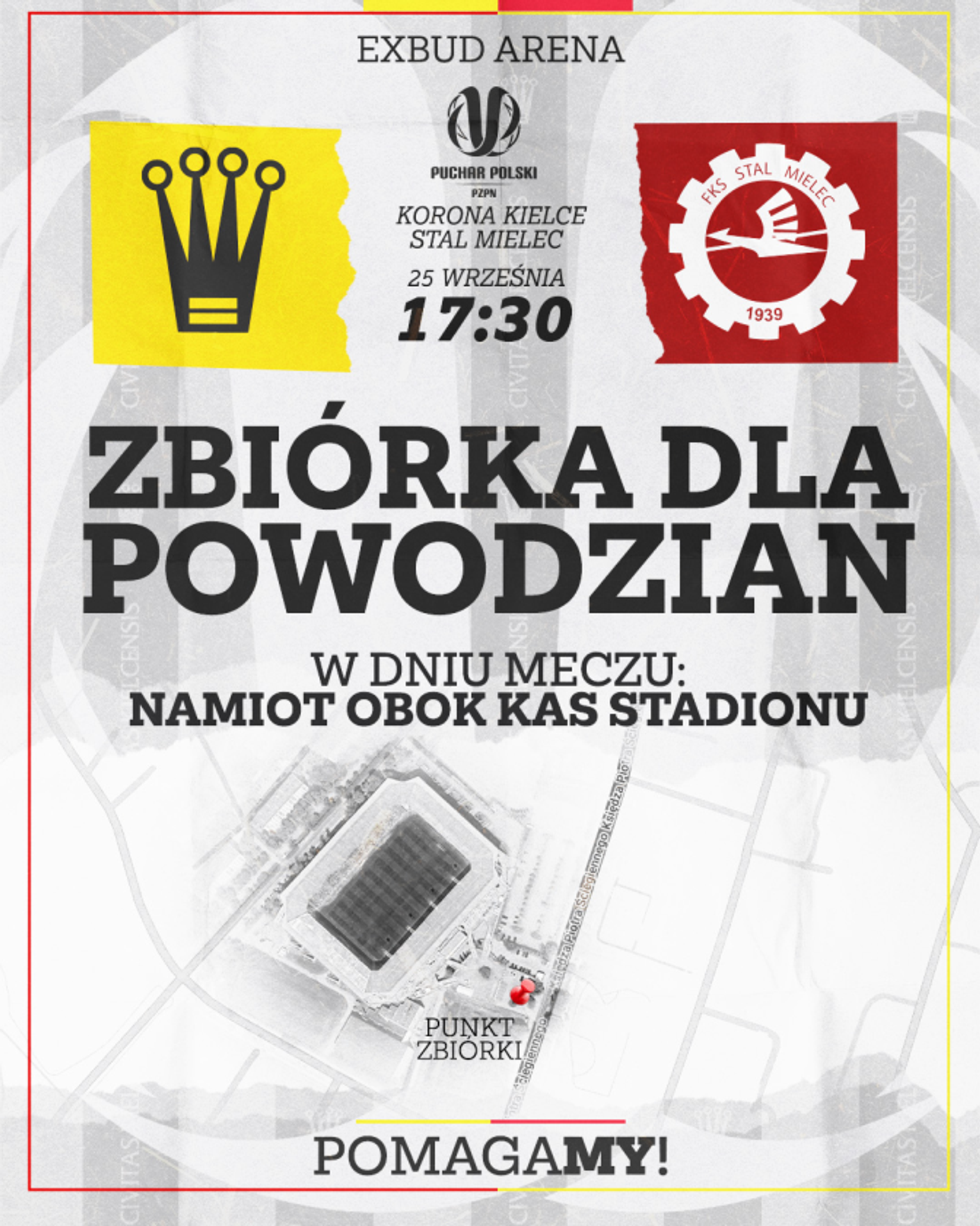 W środę od godziny 15.30 obok kas stadionowych od ulicy Ściegiennego zostanie ustawiony specjalny namiot, w którym kibice Korony Kielce będą mogli zostawiać dary dla poszkodowanych osób.