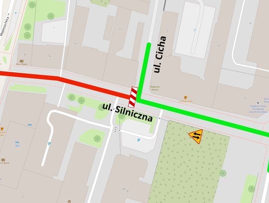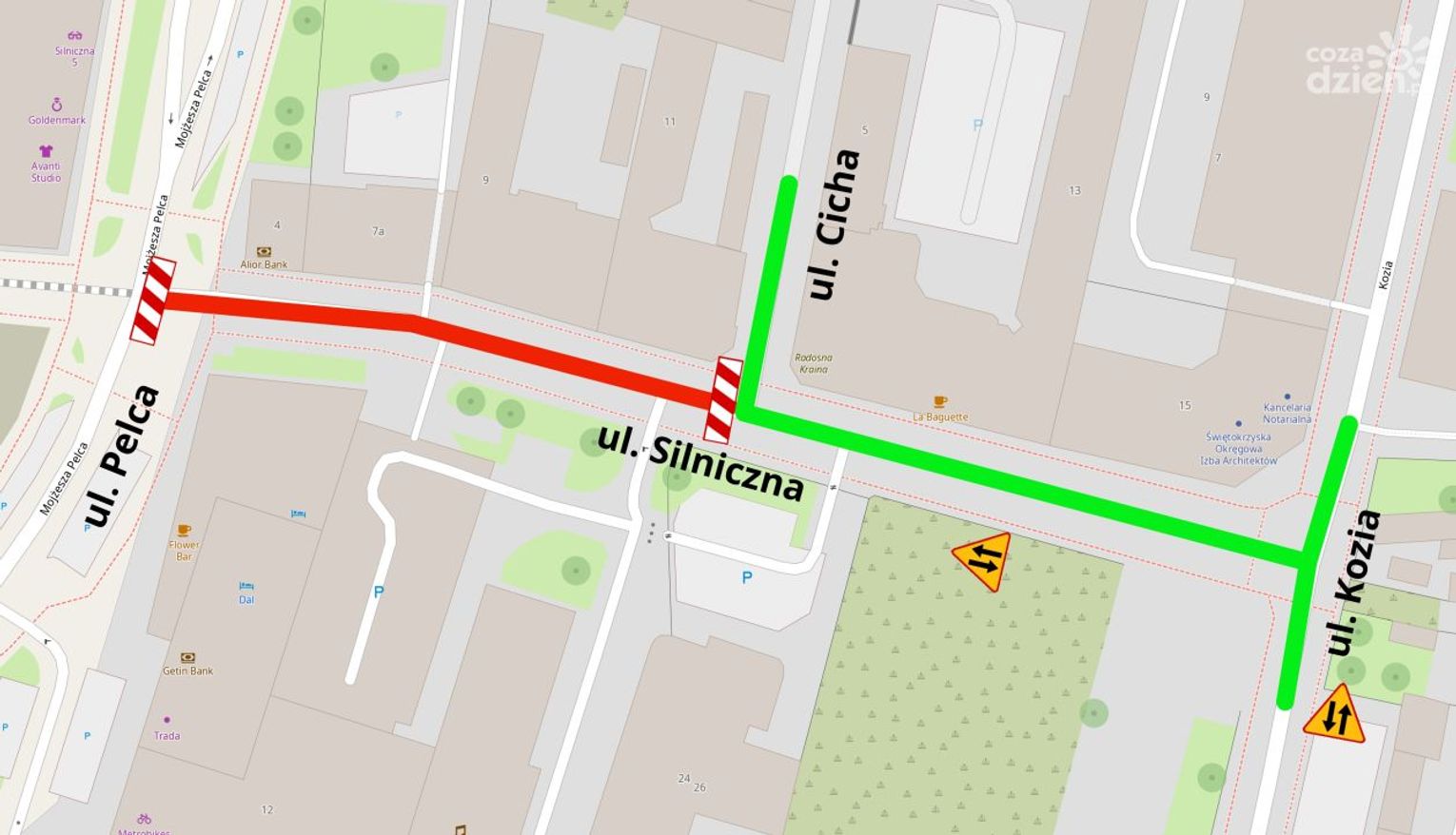 Ulica Silniczna zostanie zamknięta dla ruchu ogólnego na odcinku od ul. Pelca do ul. Cichej. Zakaz wjazdu nie dotyczy zaopatrzenia, służb miejskich oraz dojazdu do posesji. Przy ulicy Koziej obowiązywał będzie ruch dwukierunkowy.