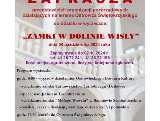 Oddział PTTK im. S. Jeżewskiego w Ostrowcu organizuje wycieczkę dla przedstawicieli ostrowieckich organizacji pozarządowych. Wyprawa pod nazwą "Zamki doliny Wisły" będzie do Tarnobrzegu oraz Baranowa Sandomierskiego.