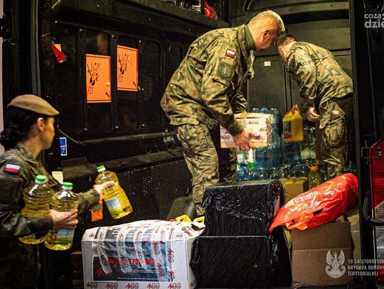 Tym razem żołnierze 10 Świętokrzyskiej Brygady Obrony Terytorialnej wspólnie ze Związkiem Zawodowym Przemysłu Elektromaszynowego MESKO S.A., pracownicy i Zarząd MESKO S.A., Szkołą Podstawową im. Wandy Łyczkowskiej w Ostojowie oraz Politechniką Świętokrzyską przekazali pomoc mieszkańcom Dolnego Śląska poszkodowanym przez powódź. Zebrane produkty zostały przewiezione do Sztabu Pomocy Poszkodowanym Dolnośląskiego Parku Innowacji i Nauki we