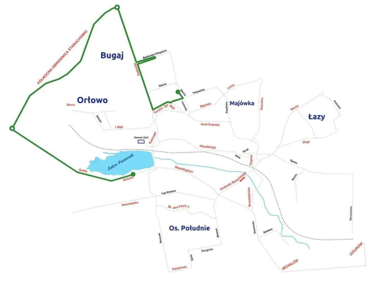Trasa tej zastępczej linii będzie wykonywana wyłącznie w dni robocze. Jej trasa będzie wiodła ulicami Kielecką – Obwodnicą Północną (droga 744) – przez Bugaj – Batalionów Chłopskich (szpital) – Radomską – Konstytucji 3 Maja – Partyzantów – Szkolna /Topolowa.