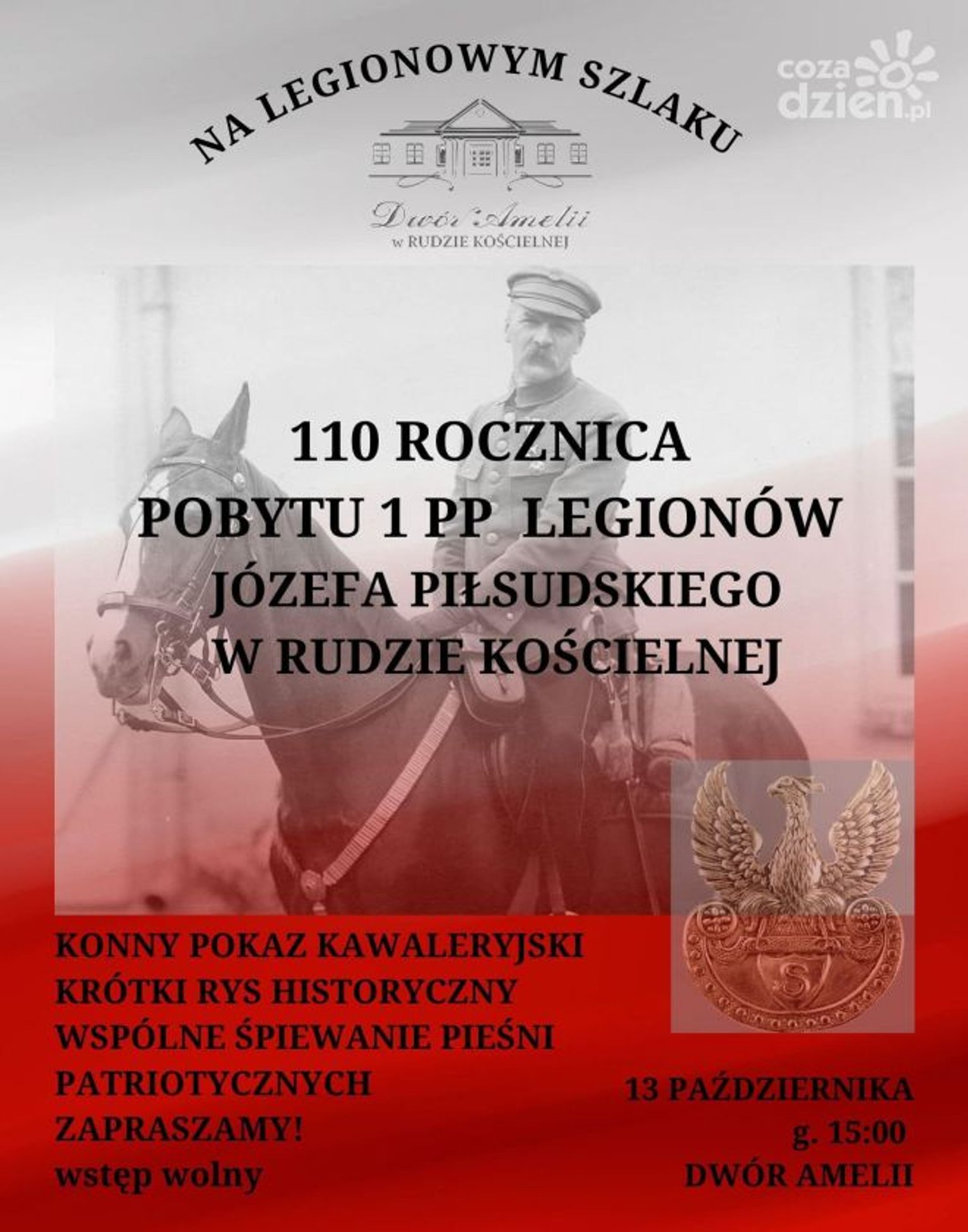 Na inscenizację historyczną związaną z pobytem 1 Pułku Piechoty Legionów Polskich Józefa Piłsudskiego w Rudzie Kościelnej zapraszają organizatorzy. Wydarzenie odbędzie się w niedzielę, 13 października w terenie Dworu Amelia w Rudzie Kościelnej w gminie Ćmielów.