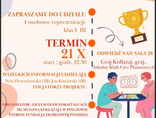 Turniej sfinansowano ze środków Narodowy Instytut Wolności - Centrum Rozwoju Społeczeństwa Obywatelskiego w ramach funduszu Ministerstwa do spraw Społeczeństwa Obywatelskiego. Więcej informacji udzielają inicjatorzy projektu Nela Pietrzykowska i Jan Kawiorski (klasa 2B).