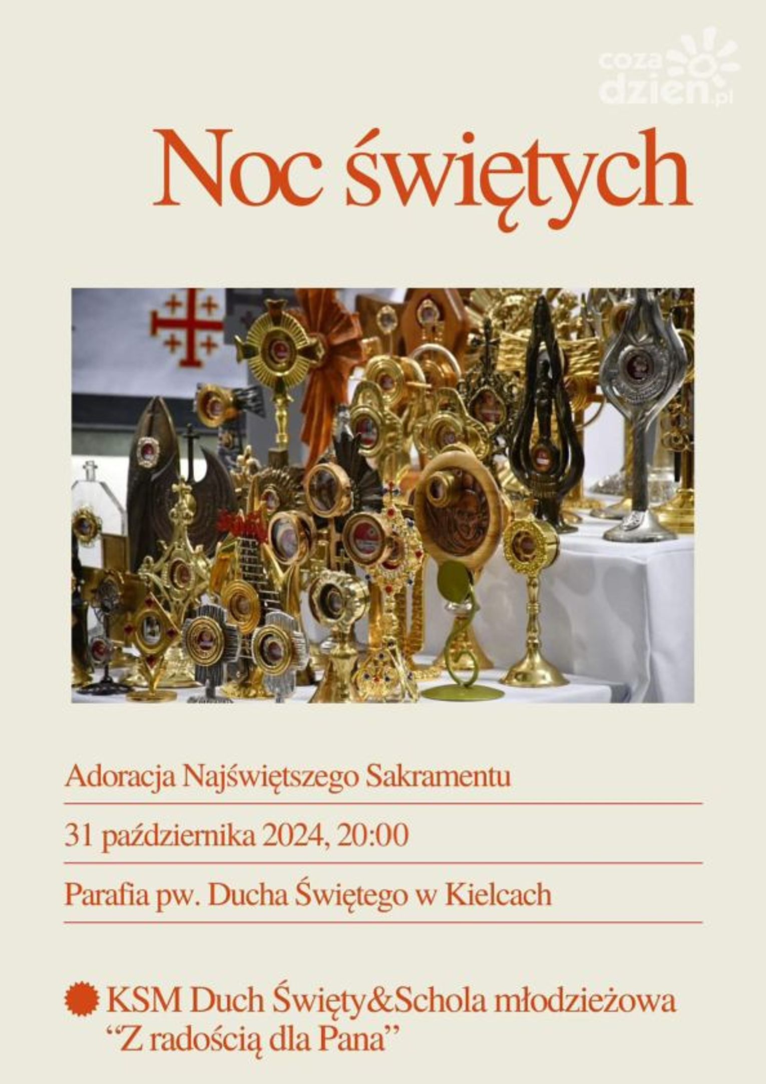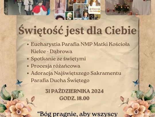 – Spotkanie ze świętymi rozpocznie się w Dąbrowie. Po Mszy Świętej odbędzie się krótkie wprowadzenie, a następnie procesja, która zakończy się w parafii Ducha Świętego. Tam odbędzie się adoracja Najświętszego Sakramentu, podczas której zaprezentowane będą także relikwie. To czas, który przygotowuje nas do Uroczystości Wszystkich Świętych, szczególnie związanej z tradycją Kościoła, która w sposób szczególny czci i szanuje relikwie świętych, wierząc w to, że człowiek zmartwychwstanie – tłumaczył ksiądz Marcin Boryń, diecezjalny duszpasterz młodzieży kieleckiej.