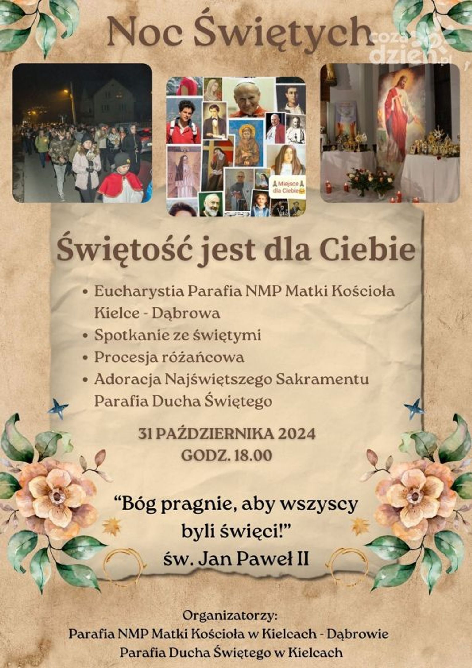 W diecezji kieleckiej coraz więcej parafii organizuje wydarzenia mające na celu zachęcenie młodych ludzi do przekonania, że świętym może zostać każdy. Centralne obchody, z udziałem biskupa ordynariusza Jana Piotrowskiego, odbędą się w parafii NMP Matki Kościoła w Kielcach-Dąbrowie Mszą Świętą o godzinie 18.00 oraz w parafii pw. Ducha Świętego w Kielcach. Następnie uczestnicy zapoznają się z postacią jednego ze współczesnych męczenników, a potem przejdą do kościoła na osiedlu na Stoku, gdzie wydarzenie zakończy się Apelem Jasnogórskim.