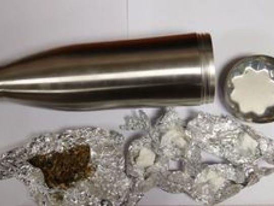 Kryminalni w kieszeni spodni mężczyzny znaleźli zawiniątko z folii aluminiowej z zawartością białego proszku. W dolnej odkręcanej części termosu, który miał przy sobie znajdowały się cztery zawiniątka z białym proszkiem i jedno z suszem roślinnym.