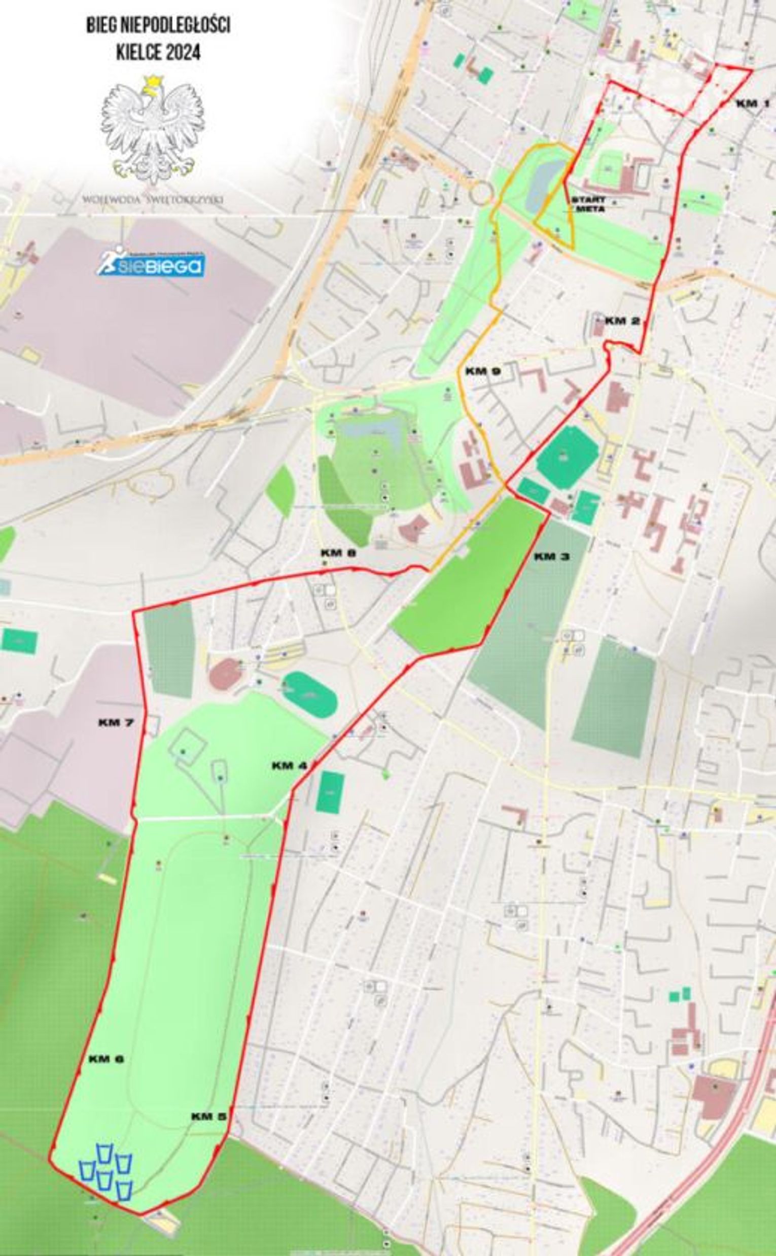 Druga trasa liczy symboliczne 1918, czyli datę odzyskania przez Polskę niepodległości. Miejscem startu oraz mety to Park Miejski w Kielcach, ul. Staszica. Bieg startuje o godzinie 11.11.