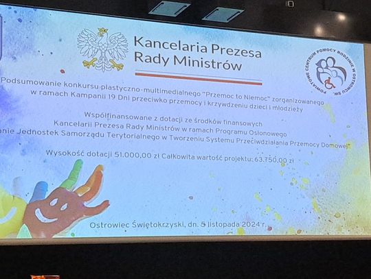 -Mówimy głośne "nie" przemocy, w każdej formie, pod każdym względem. Czy to jest przemoc domowa, czy rówieśnicza, czy wobec zwierząt, wobec osób starszych, czy też niepełnosprawnych. Prace, które przedstawiły dzieci, mają różny charakter. Pokazują nam, jaka przemoc ich najbardziej gdzieś w pobliżu, gdzie ją widzą, gdzie mają jakikolwiek styczność. Nie mówię, że ich dotykają, ale z którą się gdzieś tam spotykają. A najwięcej przemocy, analizując te prace, to jest jednak przemoc rówieśnicza. I ta przemoc rówieśnicza pojawia się w 85% tych prac wykonanych- mówiła Joanna Pikus dyrektor Powiatowego Centrum Pomocy Rodzinie w Ostrowcu.