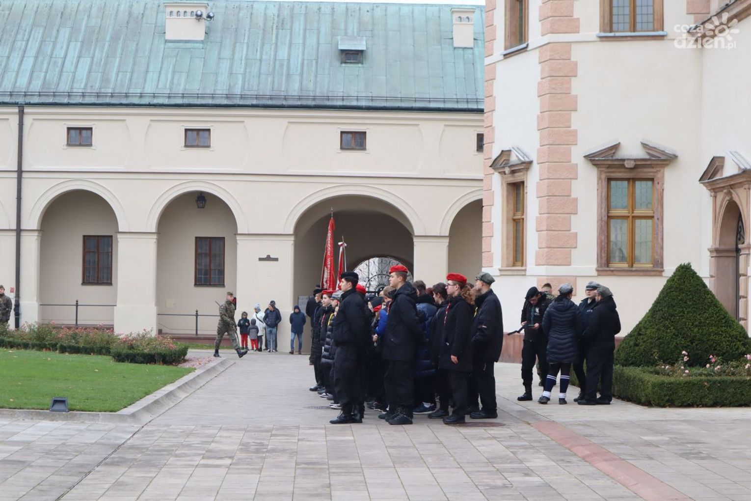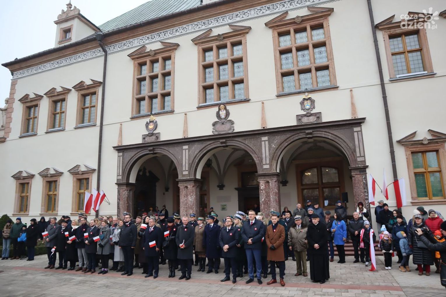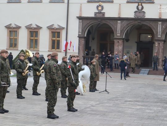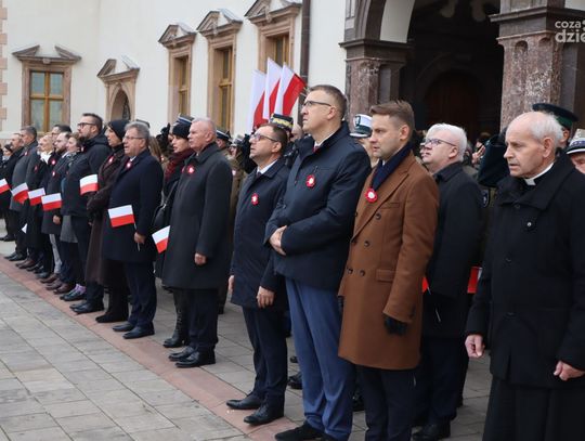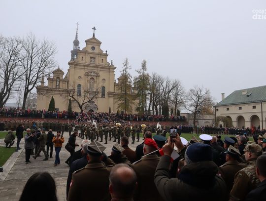 Wśród obecnych nie zabrakło przedstawicieli władz lokalnych, na czele z marszałek województwa Renatą Janik, wojewodą świętokrzyskim Józefem Brykiem oraz prezydentem miasta Kielce Agatą Wojdą. Obecni byli także przedstawiciele służb mundurowych, w tym emerytowanych wojskowych. Wokół placu zgromadzeni byli także mieszkańcy stolicy regionu, począwszy od najmłodszych, a kończąc na starszych pokoleniach. Ostatnim punktem był uroczysty przemarsz pod pomnik Józefa Piłsudskiego na Placu Wolności.