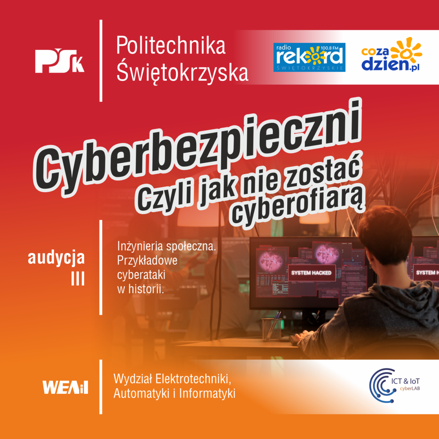 Dr inż. Justyna Kęczkowska z Politechniki Świętokrzyskiej była gościem Radia Rekord Świętokrzyskie, gdzie opowiedziała o przykładach najbardziej znanych ataków w historii cyberprzestępczości. W rozmowie poruszyliśmy temat coraz bardziej wyrafinowanych metod stosowanych przez oszustów oraz wyzwań, jakie niesie ze sobą inżynieria społeczna. Dlaczego stanowi większe zagrożenie niż tradycyjne ataki z użyciem złośliwego oprogramowania? Odpowiedzi na te pytania i wiele więcej w poniższej rozmowie.