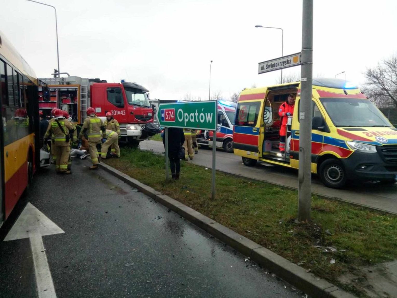 - Na miejscu pracują trzy zastępy straży pożarnej. Kierowcy autobusu i podróżującym osobówką udzielana jest pomoc medyczna - mówi Beata Gizowska.