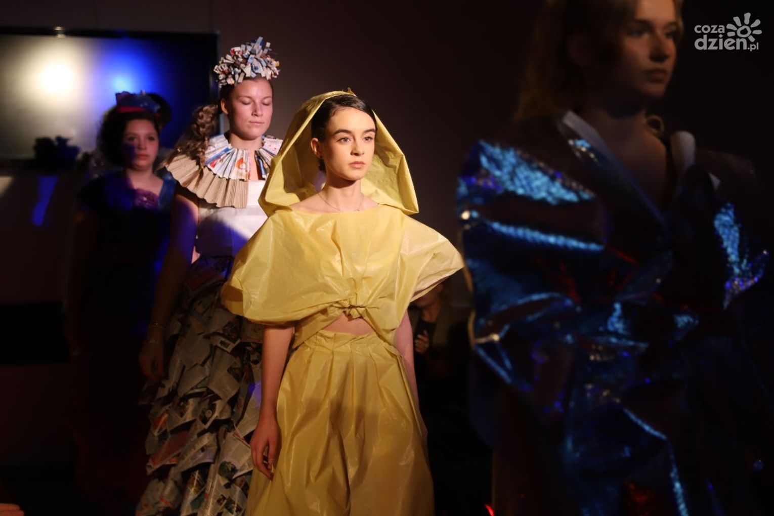 -Zebraliśmy mnóstwo materiałów, które nie były nikomu potrzebne: stare gazety, folia aluminiowa, rolki po papierze toaletowym, folia bąbelkowa. Stworzyliśmy z tego wymyślne, awangardowe kreacje, a uczniowie z kierunku fryzjerskiego postarali się i wykonali piękne fryzury. Jestem bardzo zadowolona, bo włożyliśmy naprawdę ogrom pracy - powiedziała Agnieszka Perczak-Buda - nauczycielka i koordynatorka projektu.