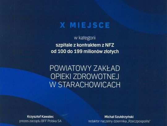 Powiatowy Zakład Opieki Zdrowotnej w Starachowicach znalazł się w gronie najlepiej zarządzanych szpitali w zestawieniu opracowanym przez dziennik „Rzeczpospolita” i specjalistycznego rankingu firm z branży medycznej BFF Banking Group.